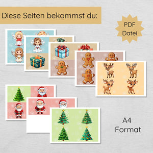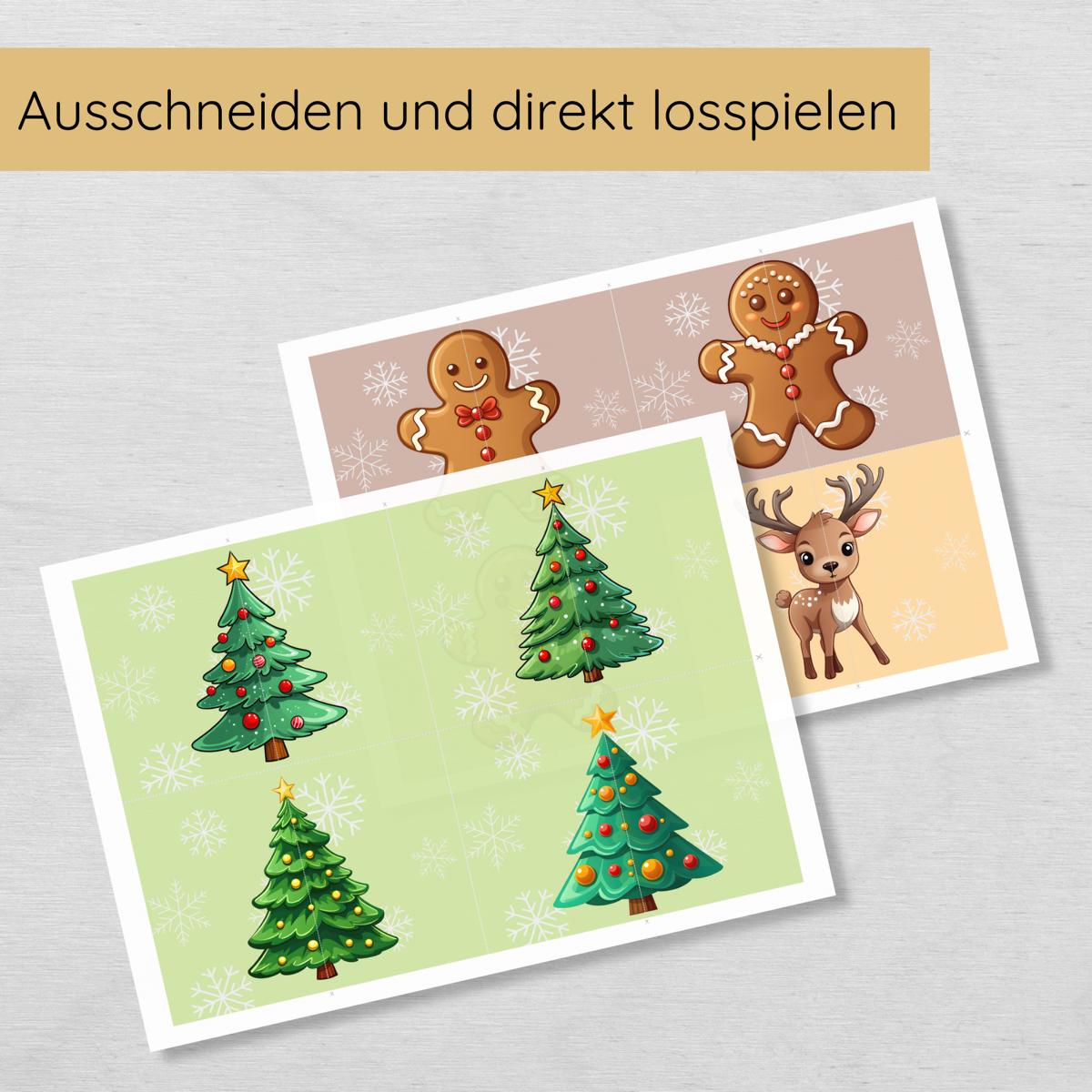 In diesem Set findest du 30 liebevoll gestaltete Weihnachtsmotive, die darauf warten, zusammengesetzt zu werden. Dein Kind kann die passenden Hälften von Weihnachtsmann, Rentier, Geschenk und vielen weiteren festlichen Figuren suchen und dabei spielerisch seine Konzentrations- und Beobachtungsfähigkeiten verbessern.