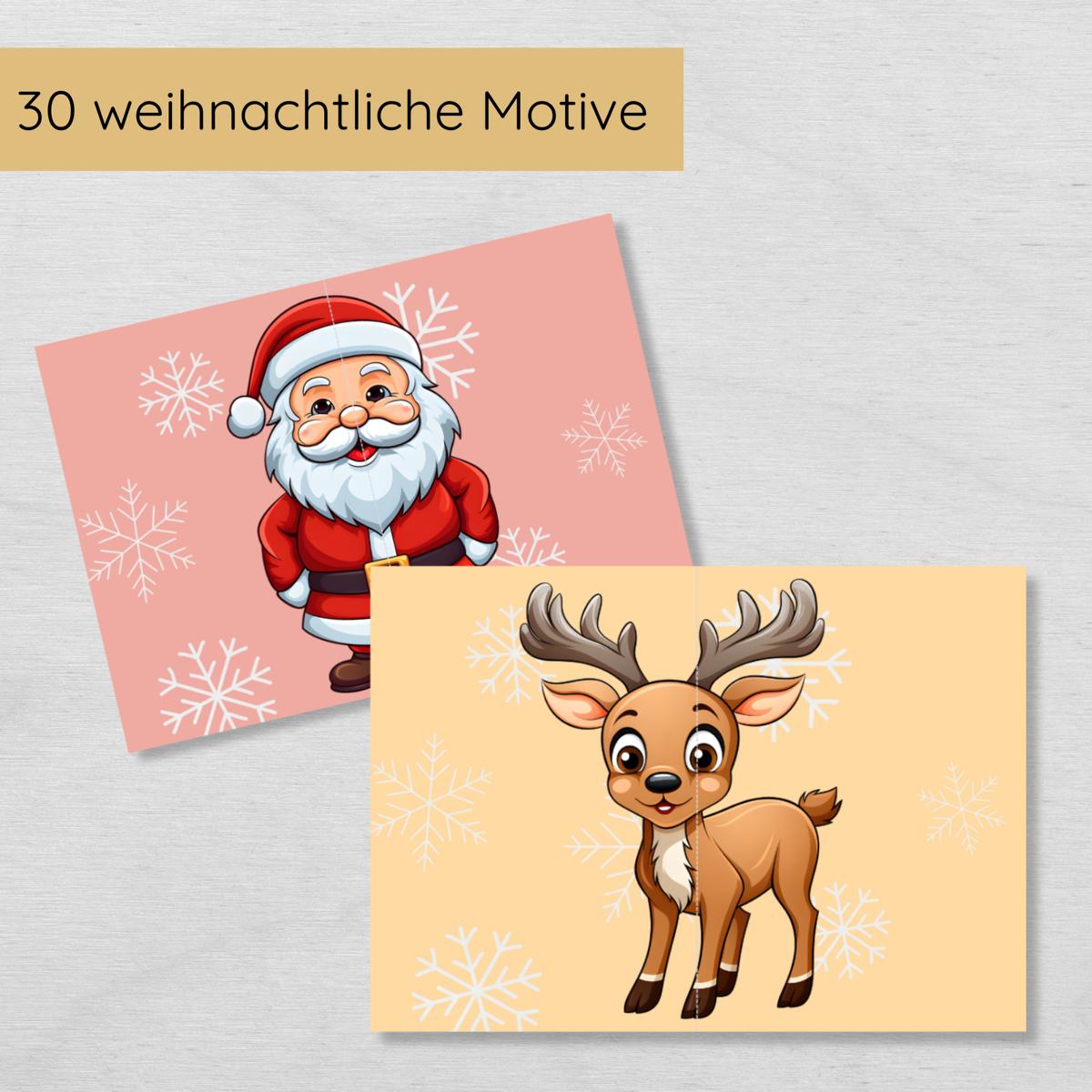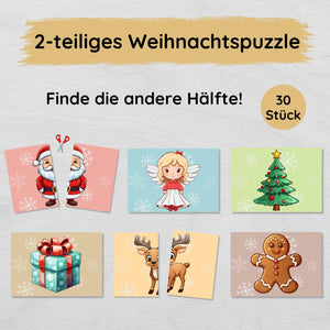 2 Teile Weihnachtspuzzle für Kinder, Hälften zuordnen