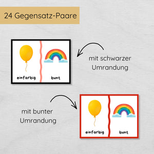 24 Gegensätze Lernkarten Paare für Kinder