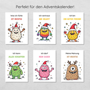 24 weihnachtliche Monster Affirmationskarten für Kinder
