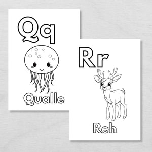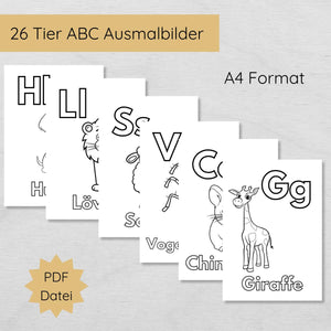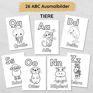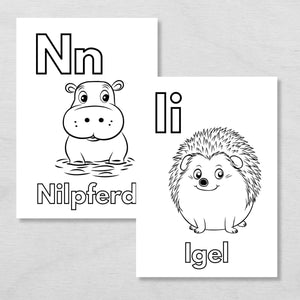 ABC Ausmalbilder für Kinder mit süßen Tiermotiven – PDF zum sofortigen Download