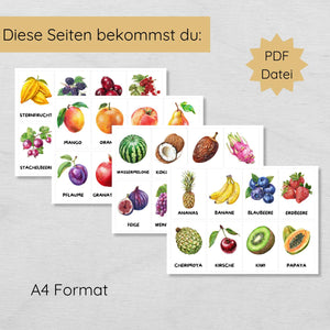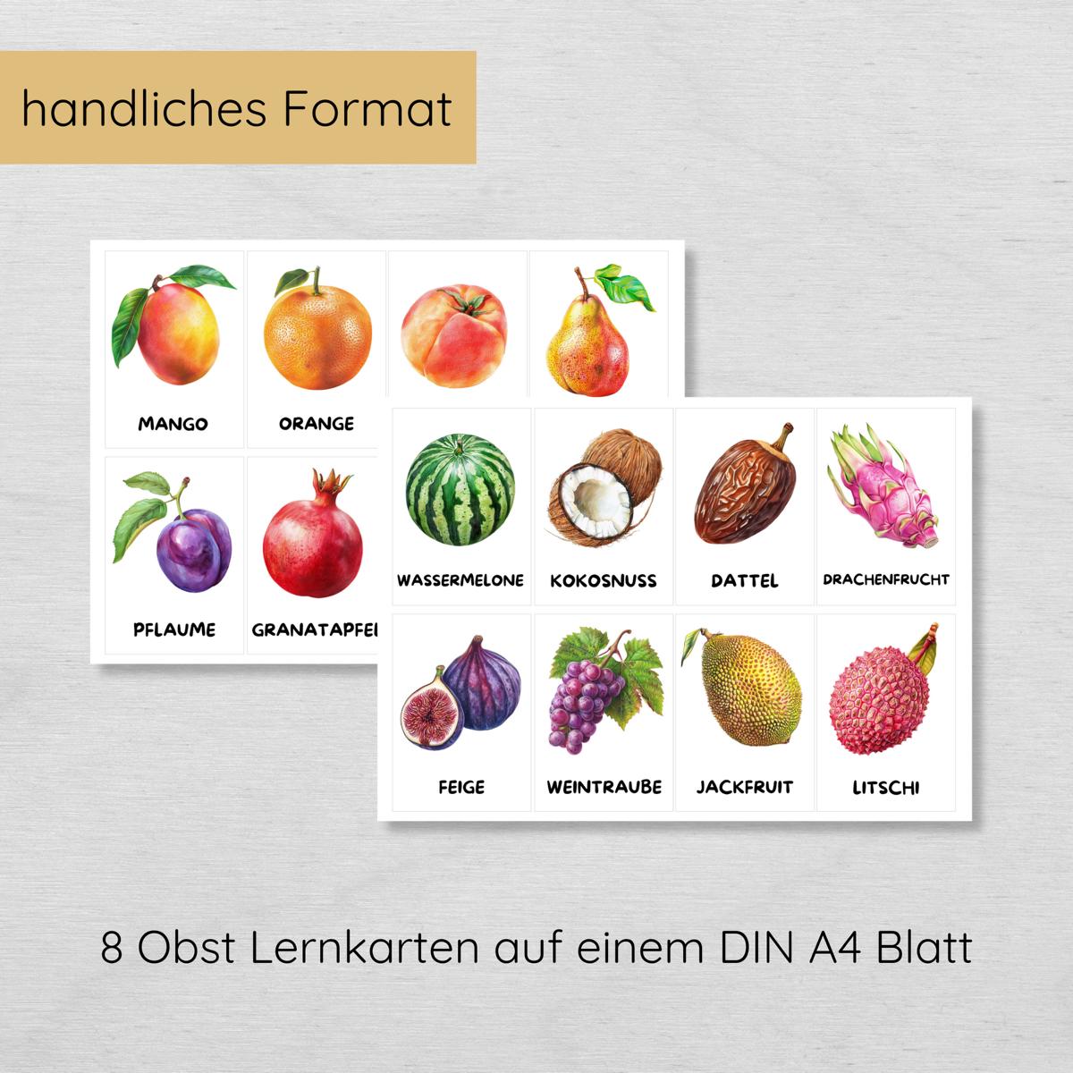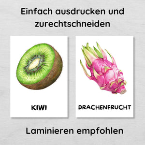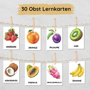 30 Obst Lernkarten für Kinder, Früchte Bildkarten