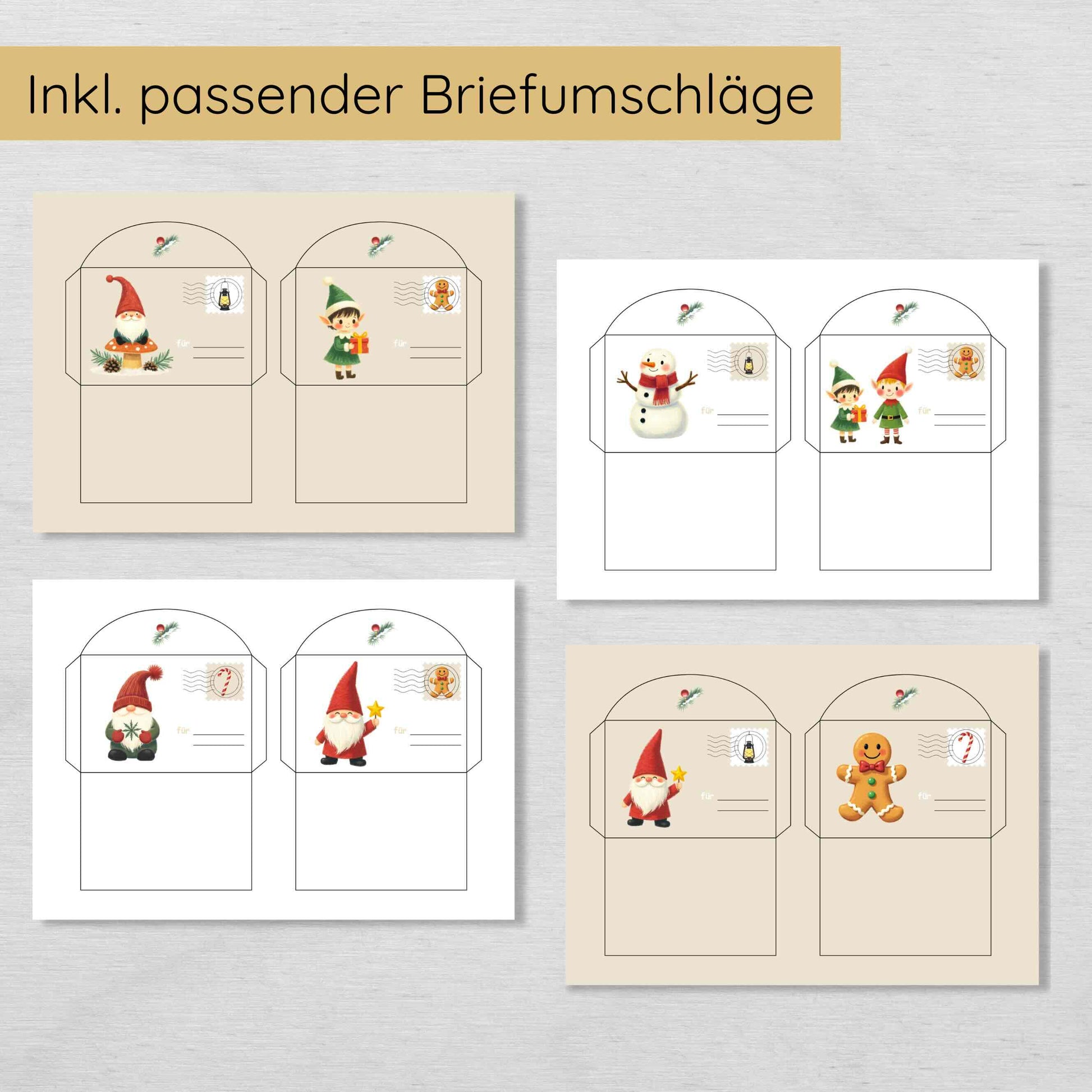 - Passende Briefumschläge im liebevollen Wichteldesign zum Ausdrucken