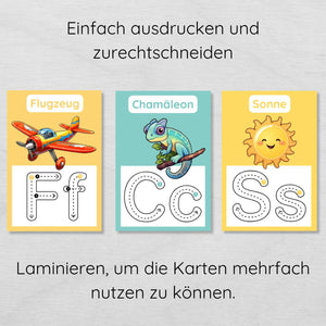 Alphabet Übungskarten zum Schreiben Lernen – 26 ABC Karten zum Ausdrucken