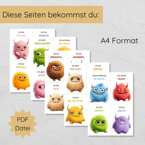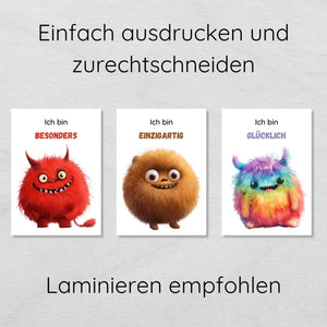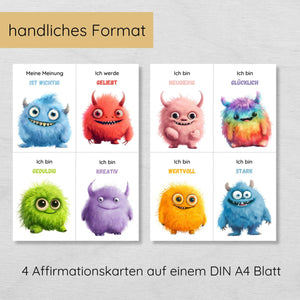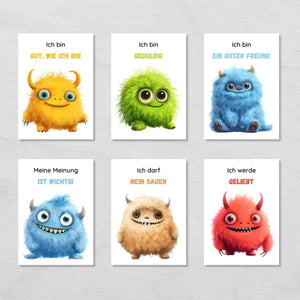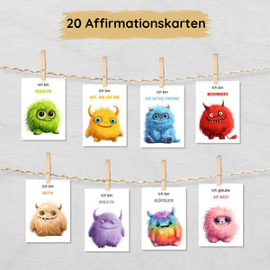 Affirmationskarten für Kinder mit 20 niedlichen Monstern