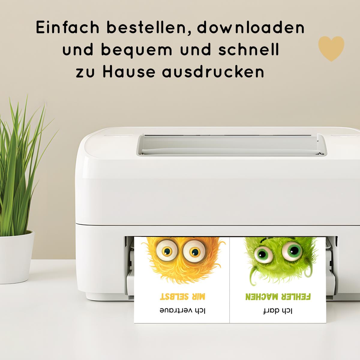 Kinder brauchen täglich Ermutigung und positive Worte – ganz besonders in den Momenten, in denen sie an sich zweifeln. Mit unseren liebevoll gestalteten Affirmationskarten für Kinder kannst du deinem Kind genau diese kleinen Stärkungen mit auf den Weg geben. Jedes der 20 Kärtchen ist mit einem niedlichen Monster illustriert und enthält eine einfache, kindgerechte Affirmation, die Mut macht, Selbstvertrauen schenkt und die innere Stärke fördert.