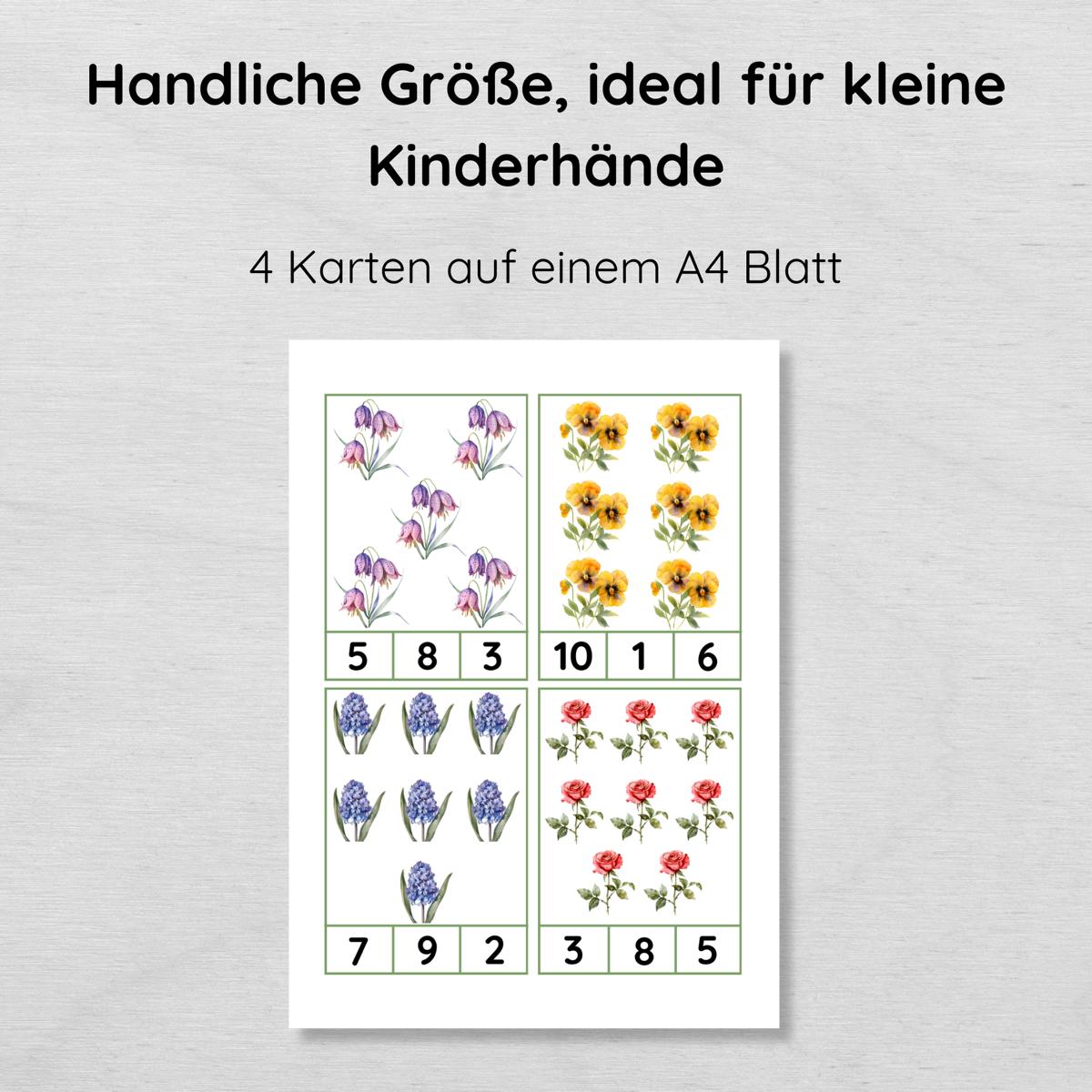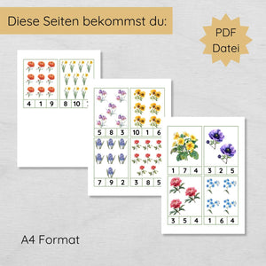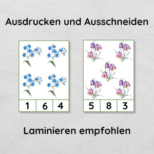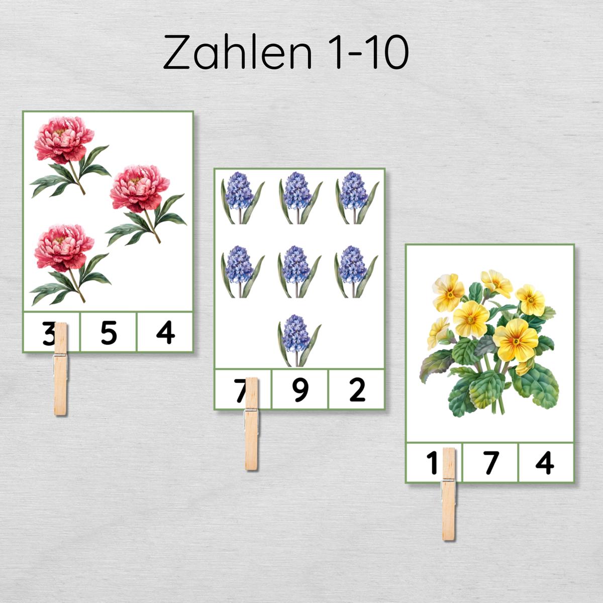 Blumen Klammerkarten Zahlen 1-10 für Kinder