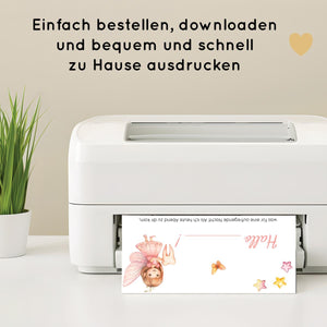 Nach dem Kauf kannst du die Datei sofort herunterladen, den Brief und die Urkunde ausfüllen und beides in den Briefumschlag stecken. Diesen kannst du dann zusammen mit einem kleinen Geschenk ins Kinderzimmer oder direkt ins Bett deines Kindes legen.