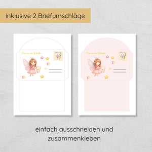 Brief von der Zahnfee Set inkl. Urkunde und Milchzahnkalender, rosa