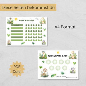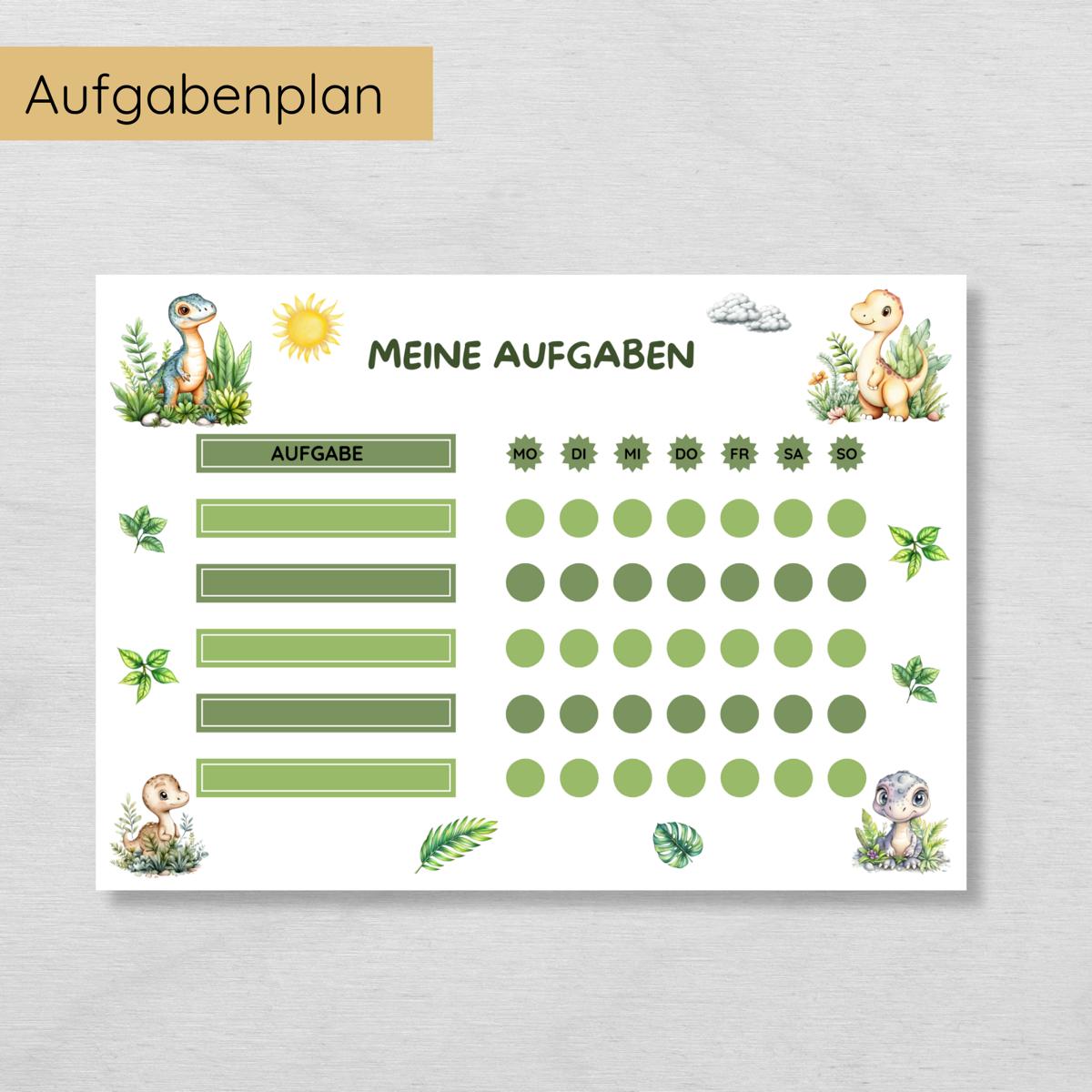 Dino Aufgabenplan und Belohnungsplan für Kinder