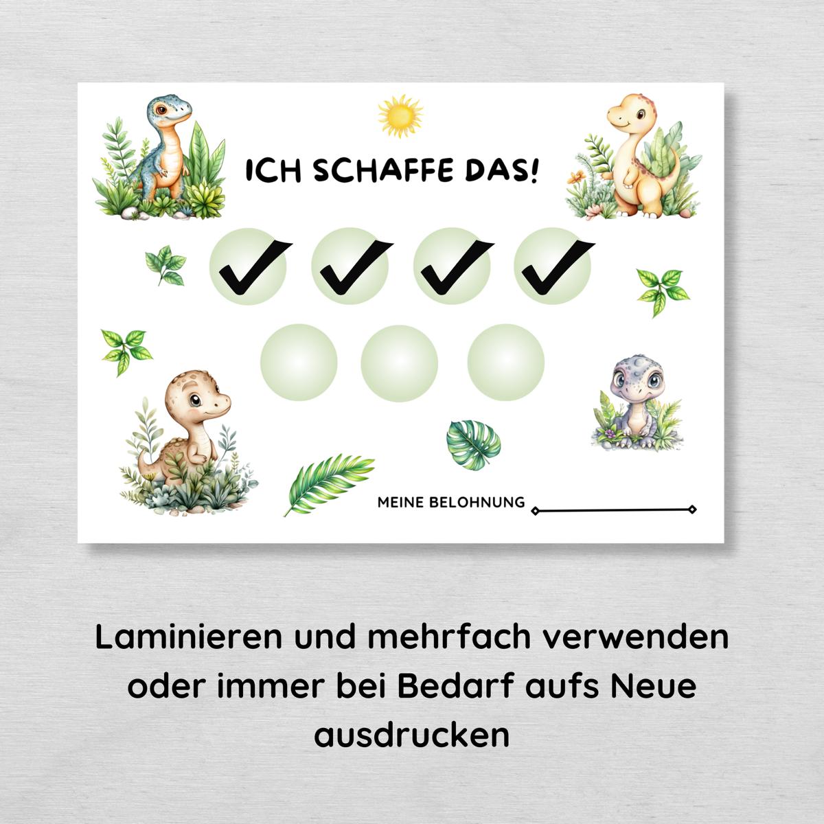 Besonders wirksam in der Morgen- oder Abendroutine, bei wiederkehrenden Aufgaben oder wenn es darum geht, mehr Struktur in den Tag zu bringen. Der Belohnungsplan verstärkt die Motivation auf liebevolle Weise und zeigt deinem Kind: Es lohnt sich, dranzubleiben – und das mit jeder Menge Dino-Spaß!