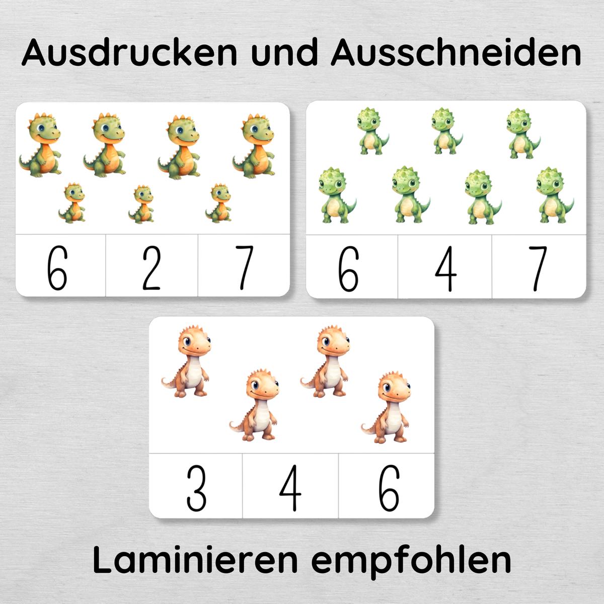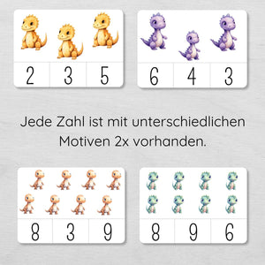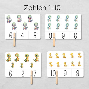 Dino Klammerkarten Zahlen 1 bis 10 für Kinder