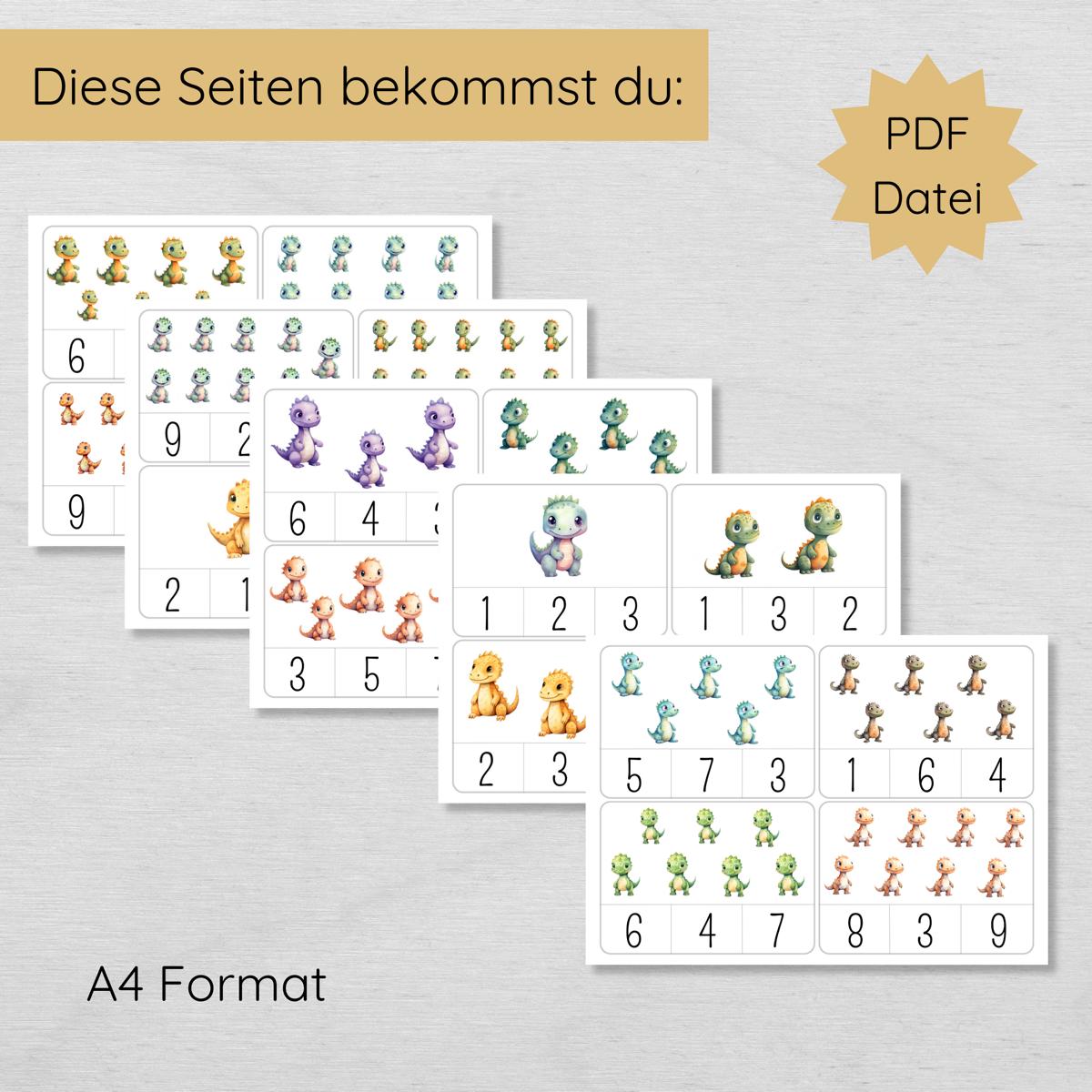 Jede Zahl ist zweimal mit unterschiedlichen, niedlichen Dinosauriermotiven dargestellt, die für zusätzlichen Spaß und Motivation sorgen. Diese Klammerkarten sind ideal für Vorschulkinder und Grundschüler und bieten eine unterhaltsame Möglichkeit, die Welt der Zahlen zu entdecken.