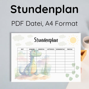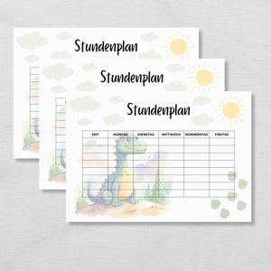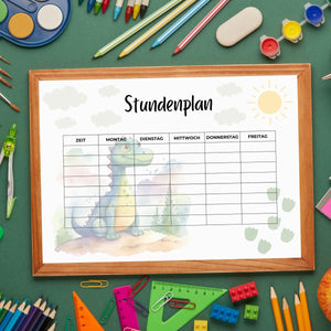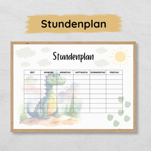 Dieser schöne Stundenplan eignet sich ganz wunderbar für alle Kinder in der Grundschule und spricht durch sein niedliches Dinosaurier Motiv vor allem Jungs an. Der Stundenplan ist schön bunt und bietet Platz für alle wichtigen Fächer und Aktivitäten, die dein Kind während der Woche absolviert.