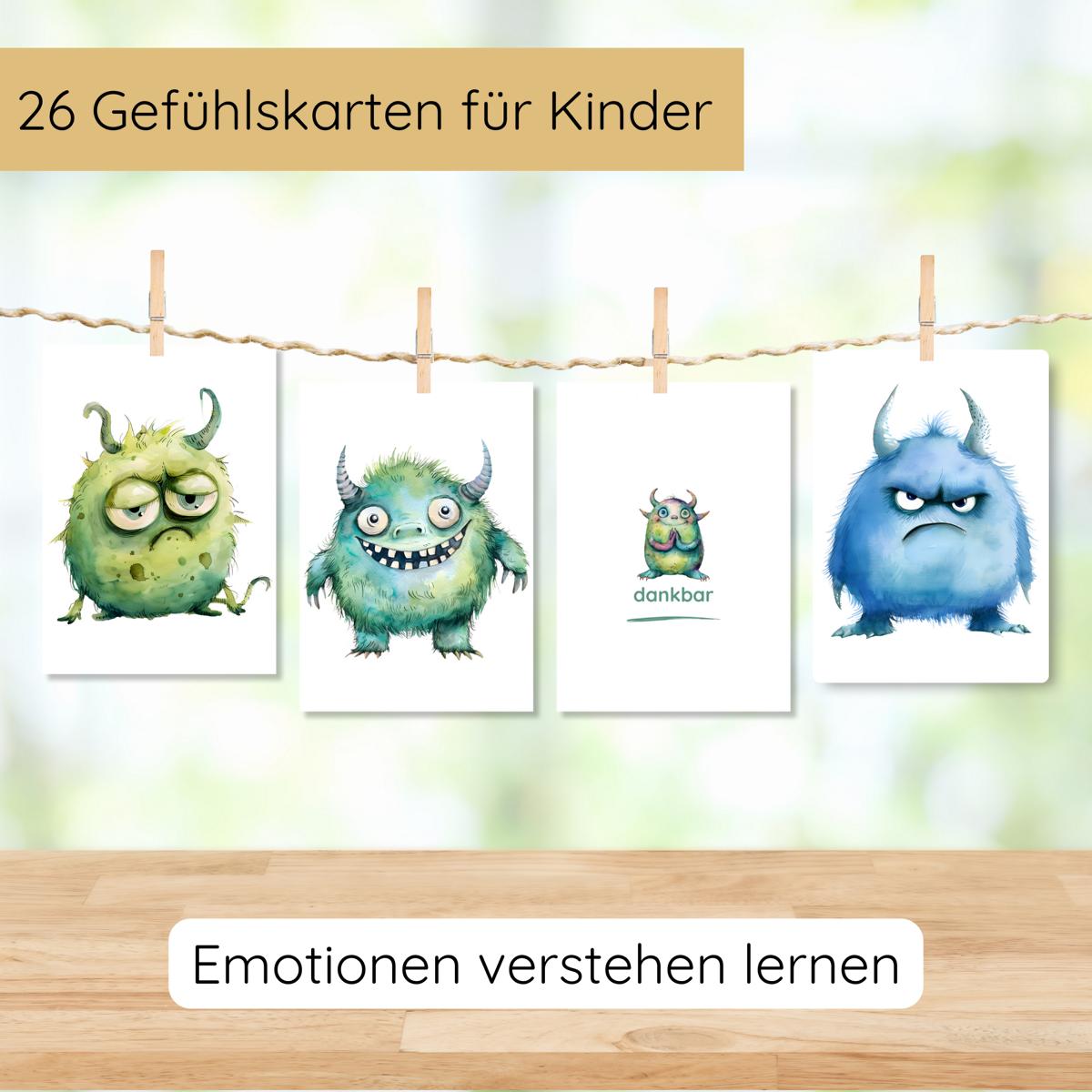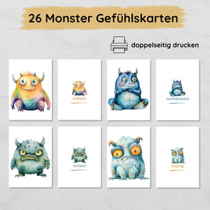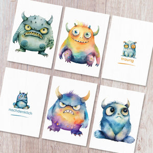 26 doppelseitige Monster Gefühlskarten für Kinder