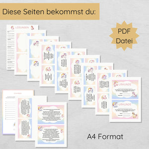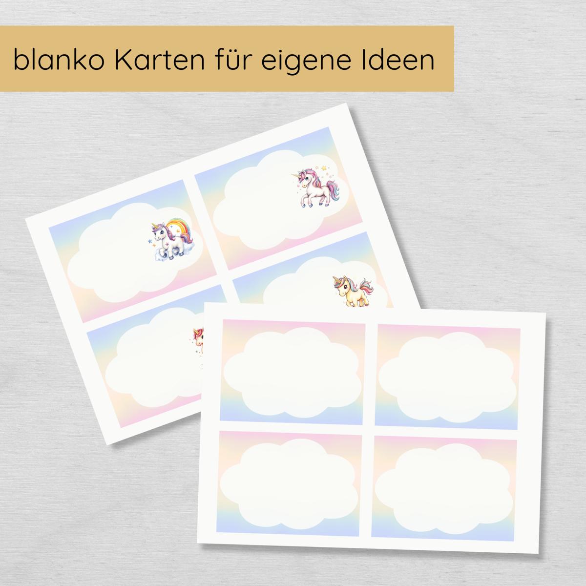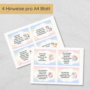- 20 thematisch passende Einhorn-Hinweiskarten