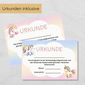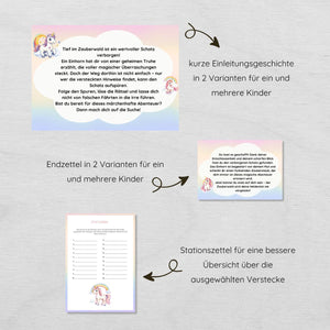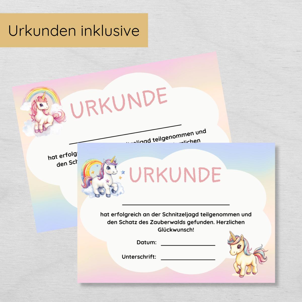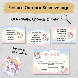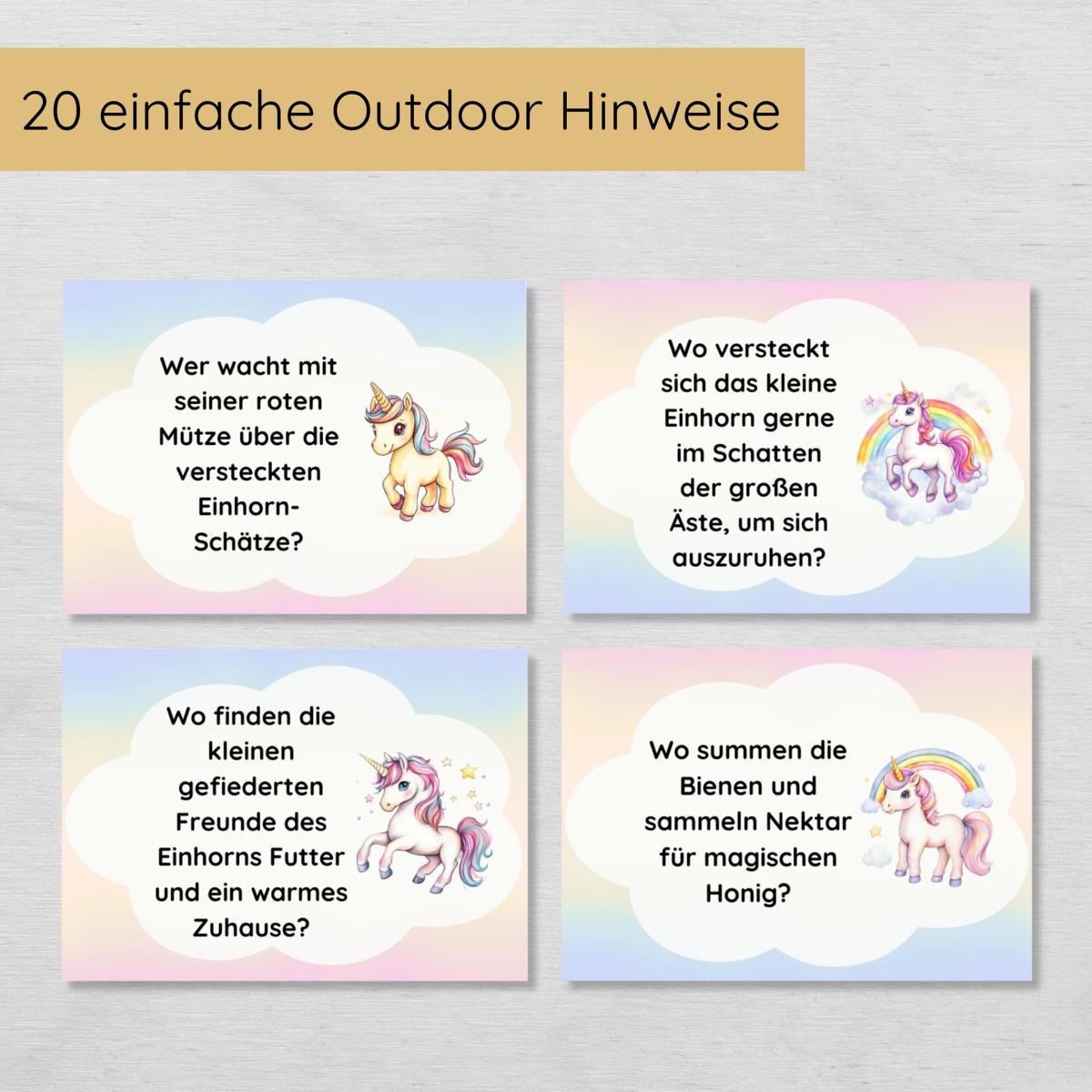 Einhorn Outdoor Schnitzeljagd - 20 einfache Hinweise, Urkunde & mehr