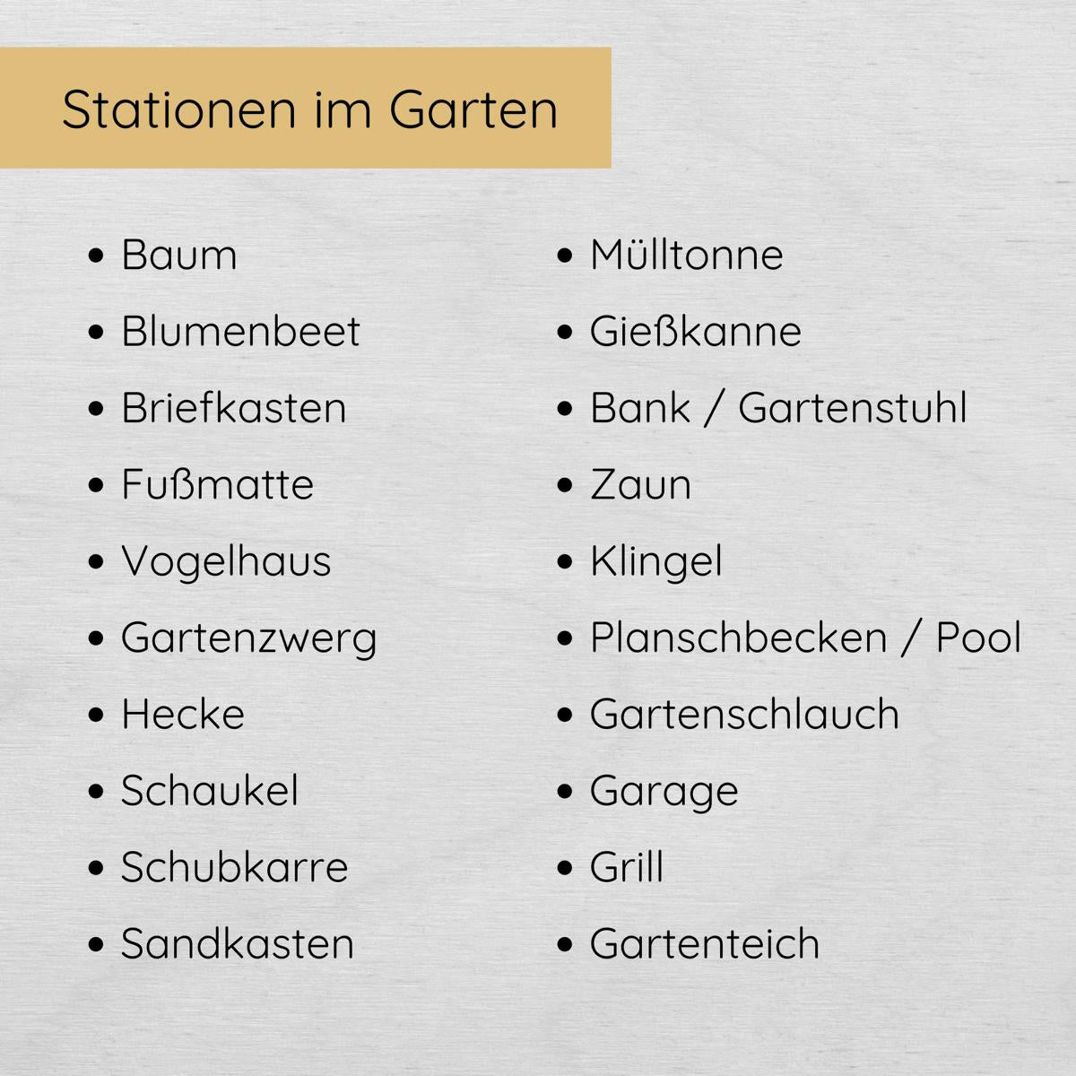 - Eine praktische Stationsliste zum Planen der Verstecke