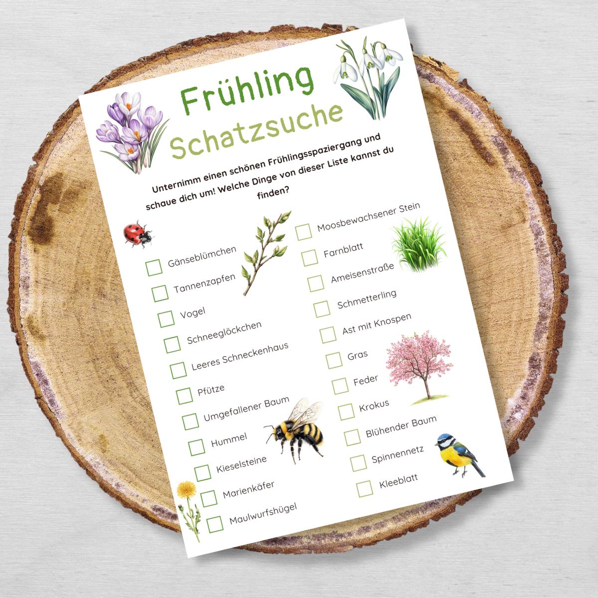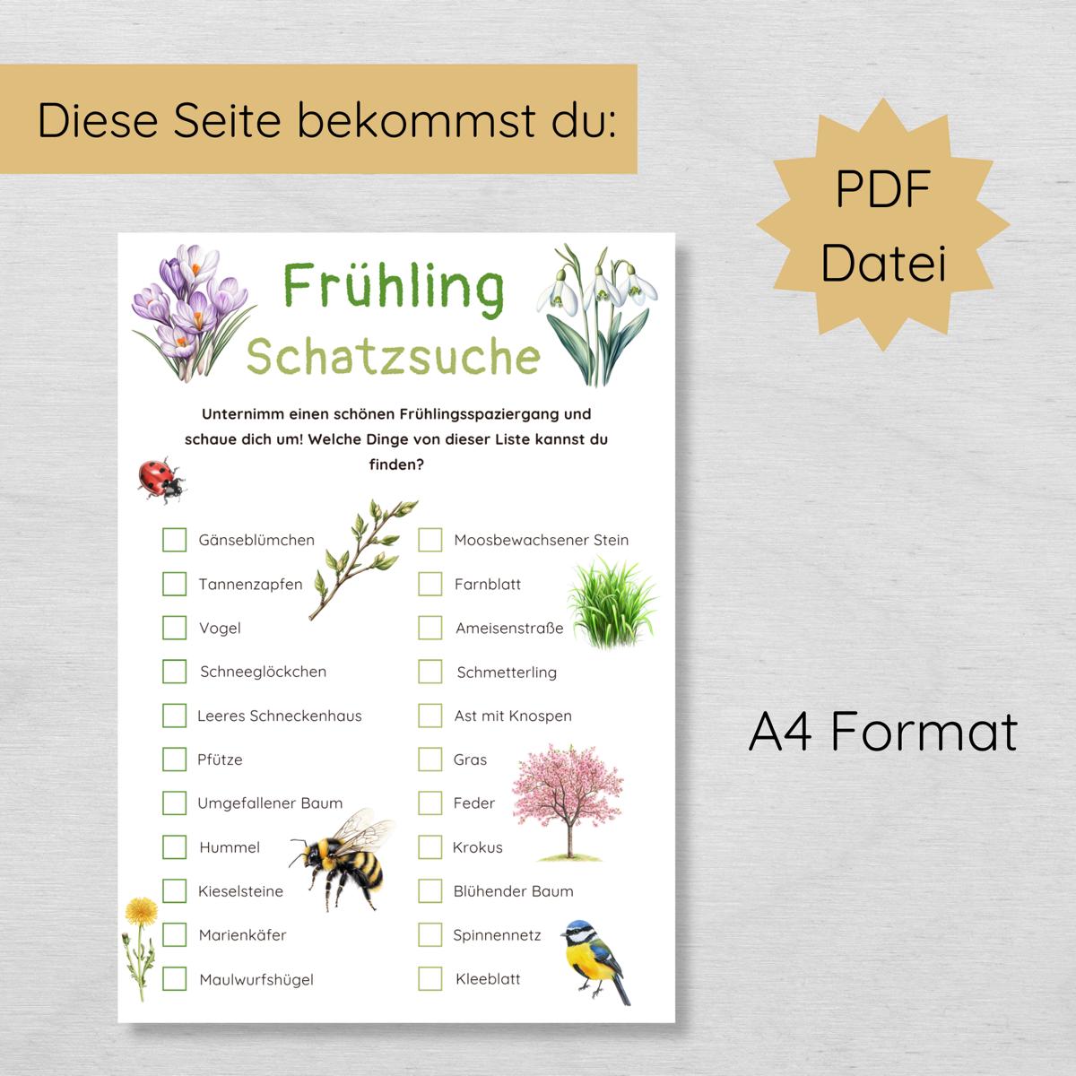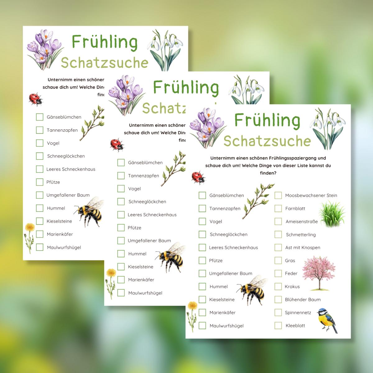 Lade die Frühlingsschatzsuche als PDF herunter, drucke sie aus und verwandle euren nächsten Spaziergang in ein spannendes Naturerlebnis für dein Kind.
