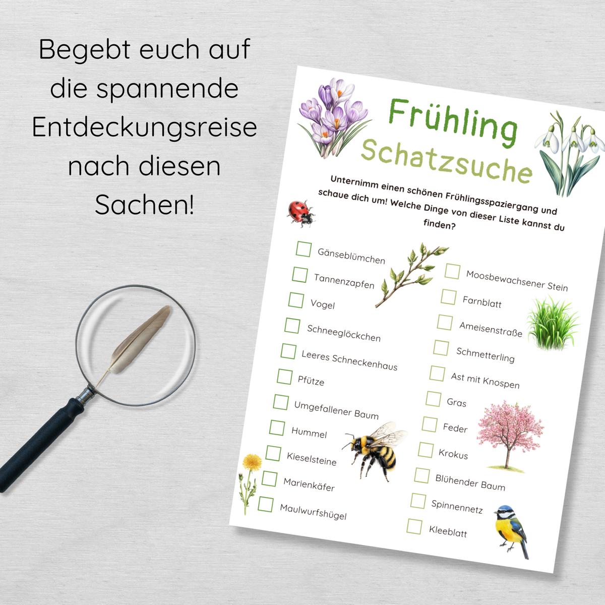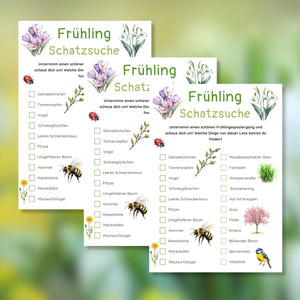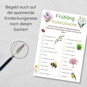 Frühlingsschatzsuche für Kinder Druckvorlage