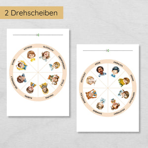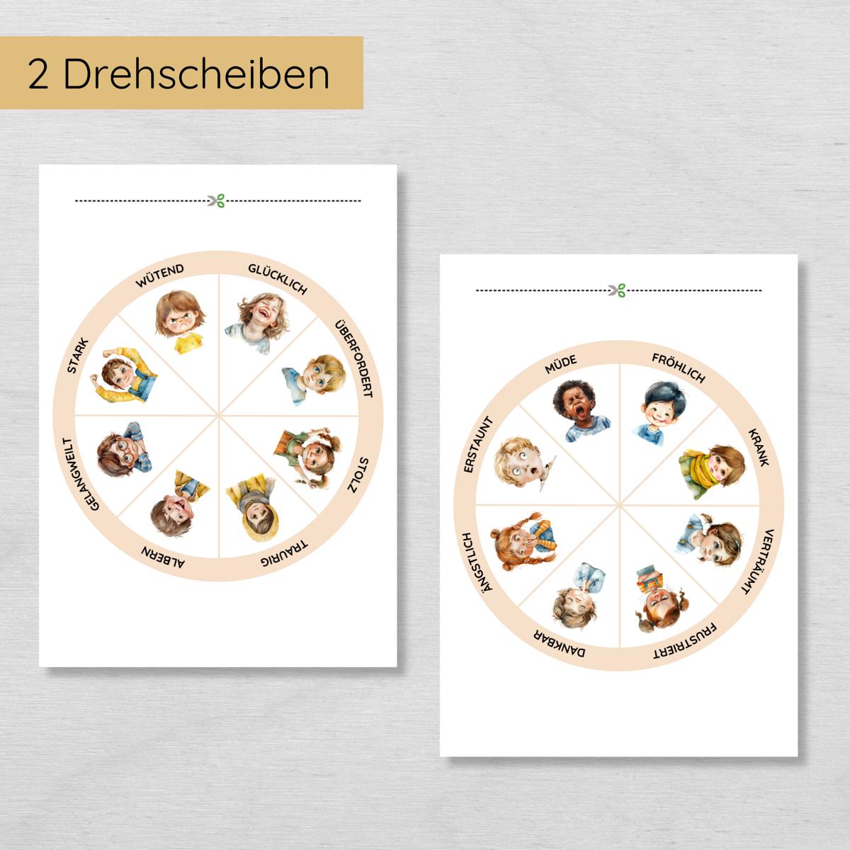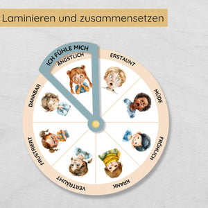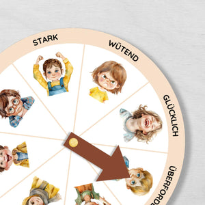 Gefühlsrad für Kinder mit menschlichen Gesichtern in 2 Varianten