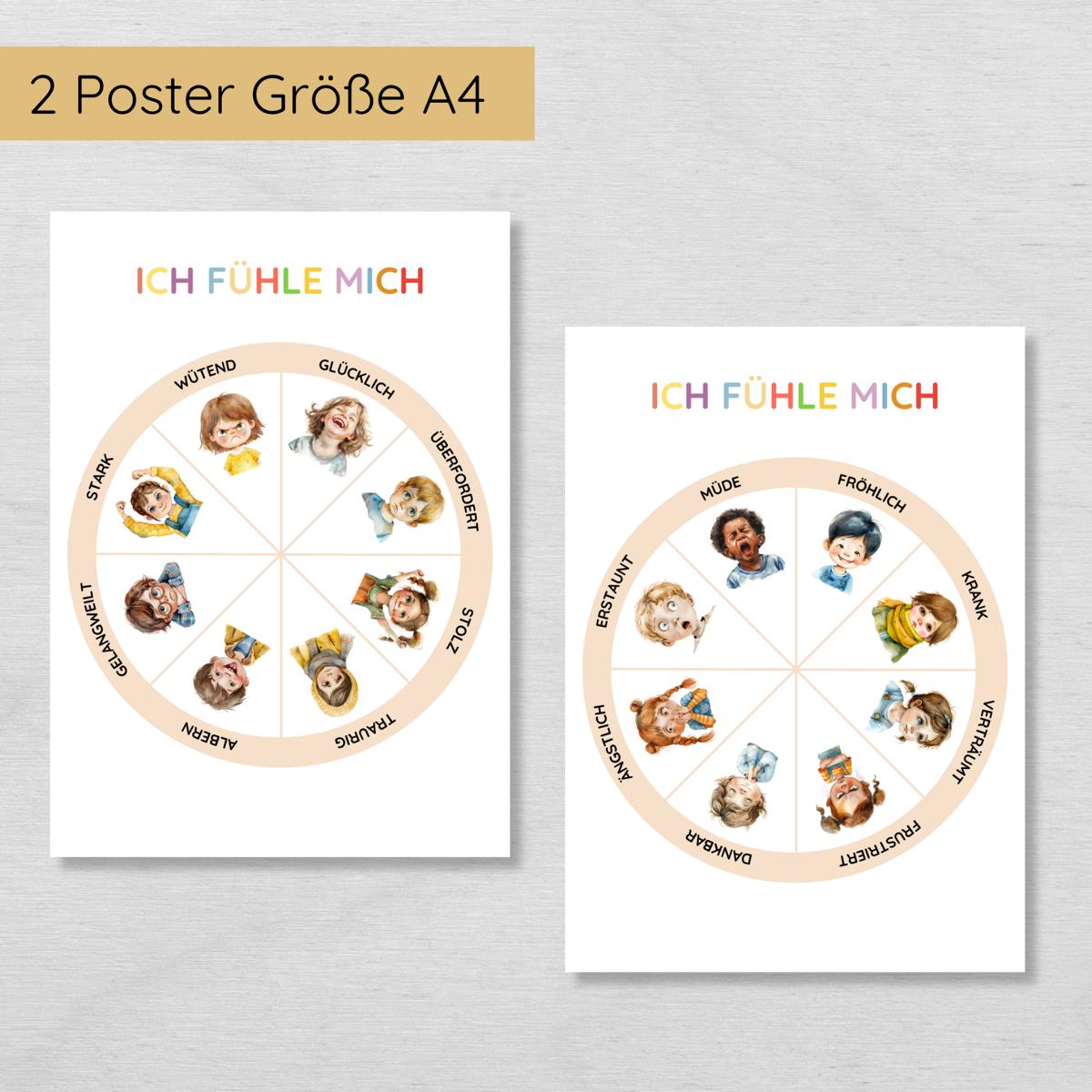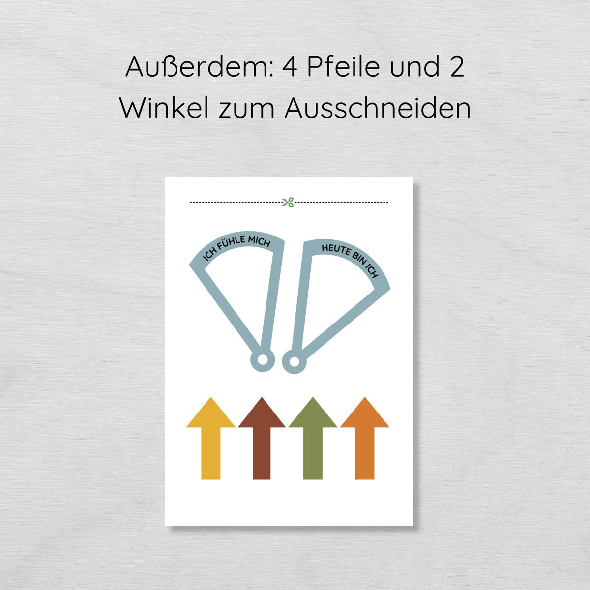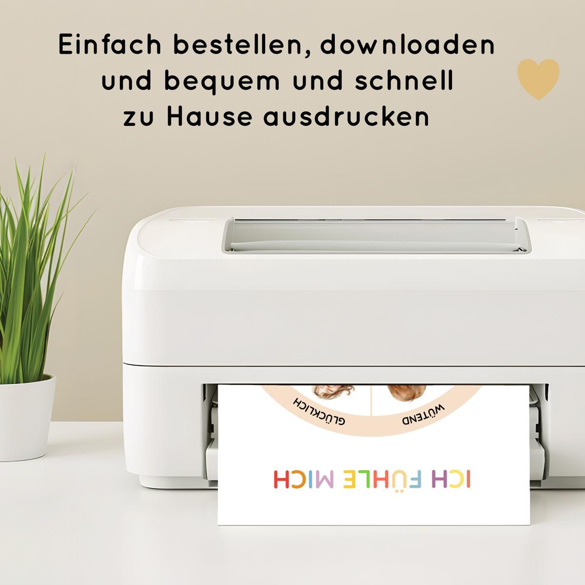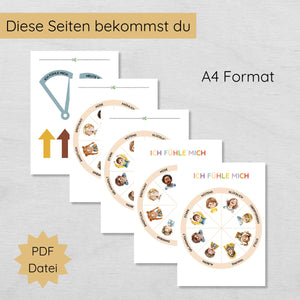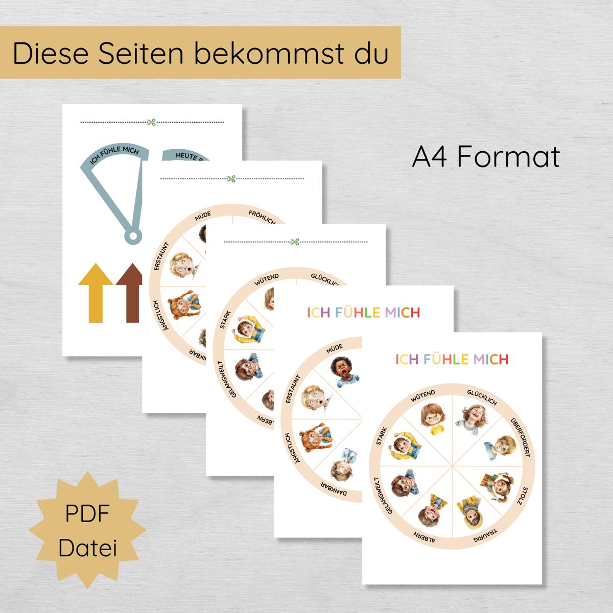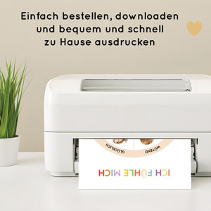 - Zwei liebevolle Designs: Gefühlsrad als A4-Poster oder als Drehscheibe zum Ausschneiden.