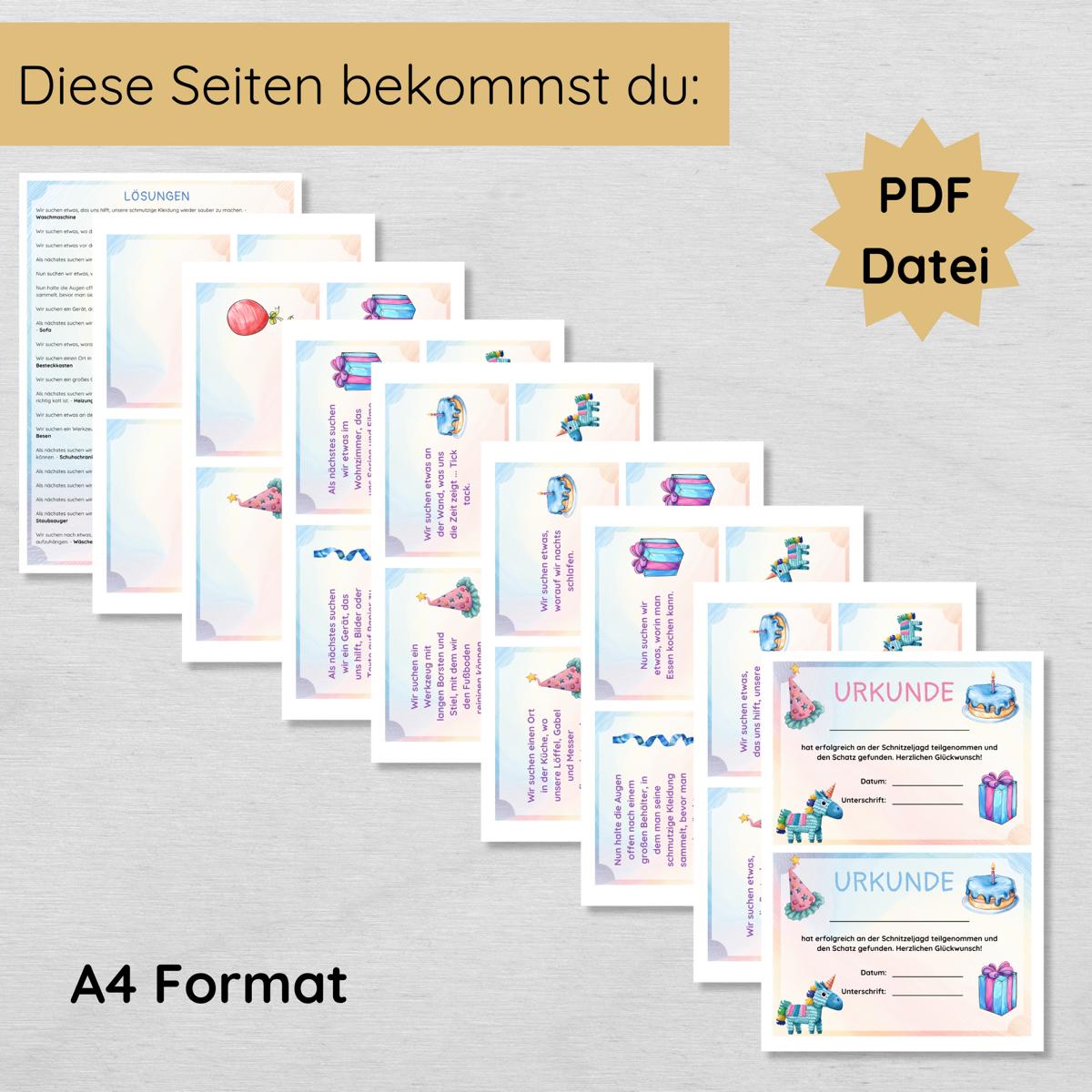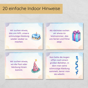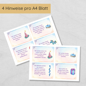Die Vorbereitung ist kinderleicht: Einfach das Set herunterladen, ausdrucken, die Hinweiskarten im Haus verstecken und die Kinder auf eine aufregende Suche schicken. So wird der Kindergeburtstag zu einem unvergesslichen Abenteuer!