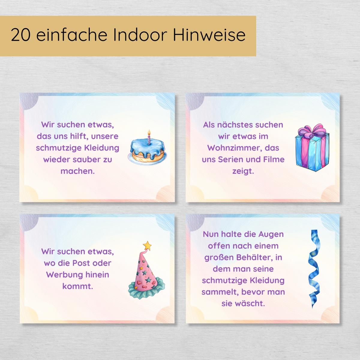 Indoor Schnitzeljagd Kindergeburtstag - 20 einfache Hinweise & Urkunde
