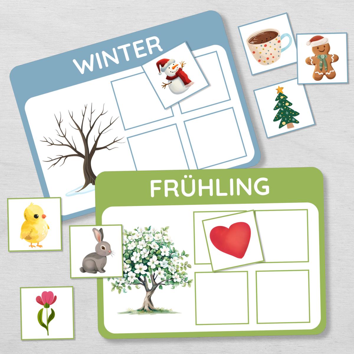 Jahreszeiten lernen Sortierspiel für Kinder