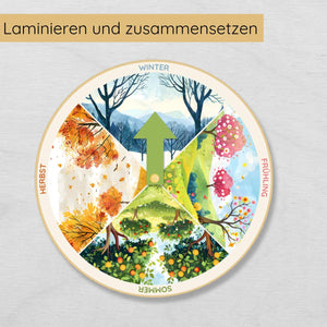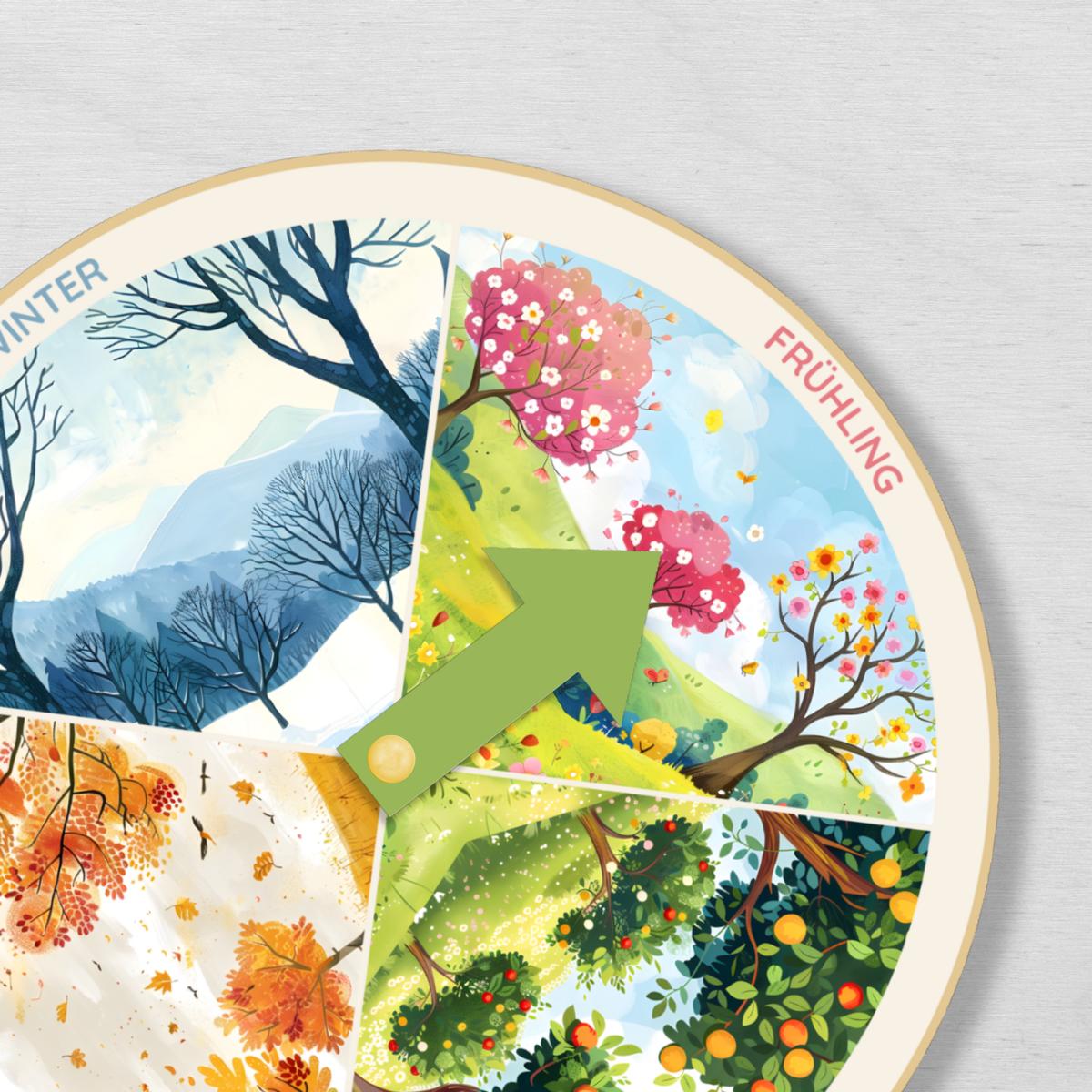 Entdecke mit deinem Kind die faszinierenden Veränderungen der Natur im Laufe des Jahres! Mit unserem interaktiven Jahreszeitenrad lernt dein Kind auf spielerische Weise die vier Jahreszeiten – Frühling, Sommer, Herbst und Winter – kennen und verstehen.