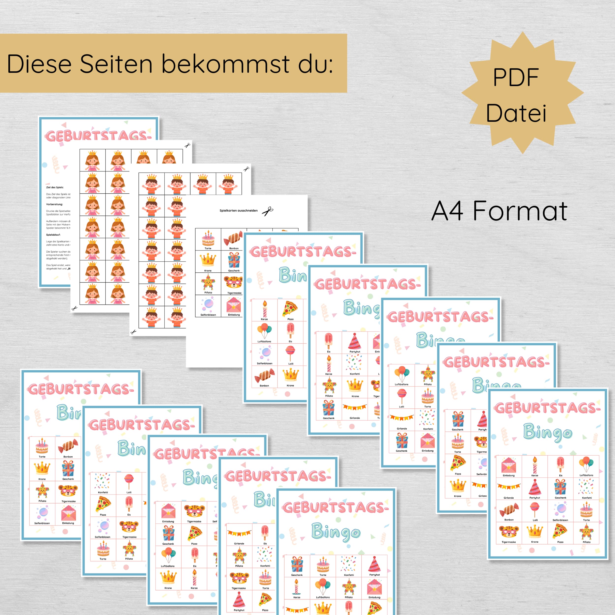 Sichere dir das Geburtstagsbingo als sofort verfügbares PDF und sorge für ein strukturiertes, fröhliches Spiel, das Kinder begeistert und Eltern entspannt planen lässt.