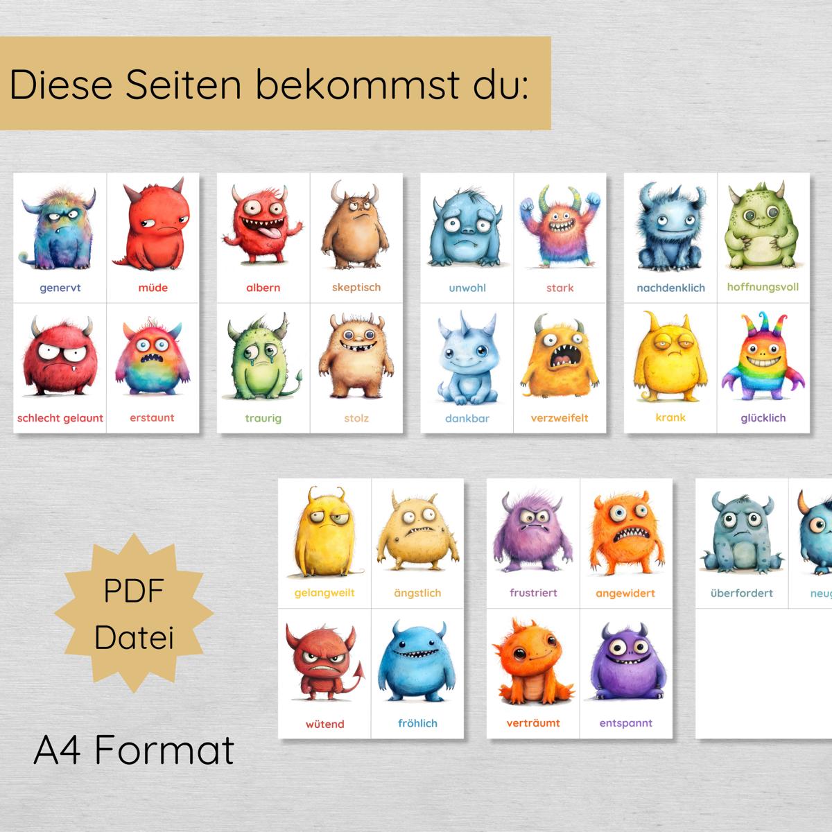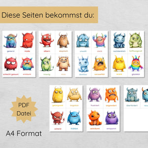Monster Gefühlskarten für Kinder mit 26 Emotionen