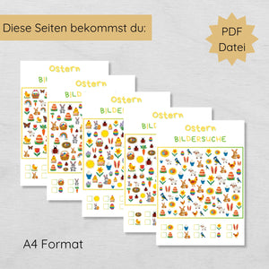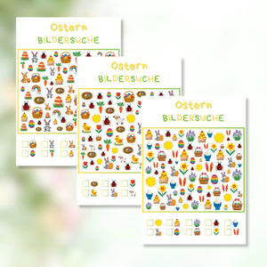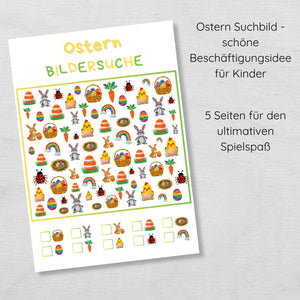 Die Ostern Bildersuche ist eine ruhige und abwechslungsreiche Beschäftigung für Kinder rund um Ostern. Auf liebevoll gestalteten Suchbildern entdecken Kinder typische Oster- und Frühlingsmotive wie Hasen, Eier, Küken, Blumen und vieles mehr. Das Spiel eignet sich ideal für die Osterzeit, die Ferien oder entspannte Nachmittage zu Hause und sorgt ganz ohne Vorbereitung für sinnvolle Beschäftigung.