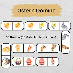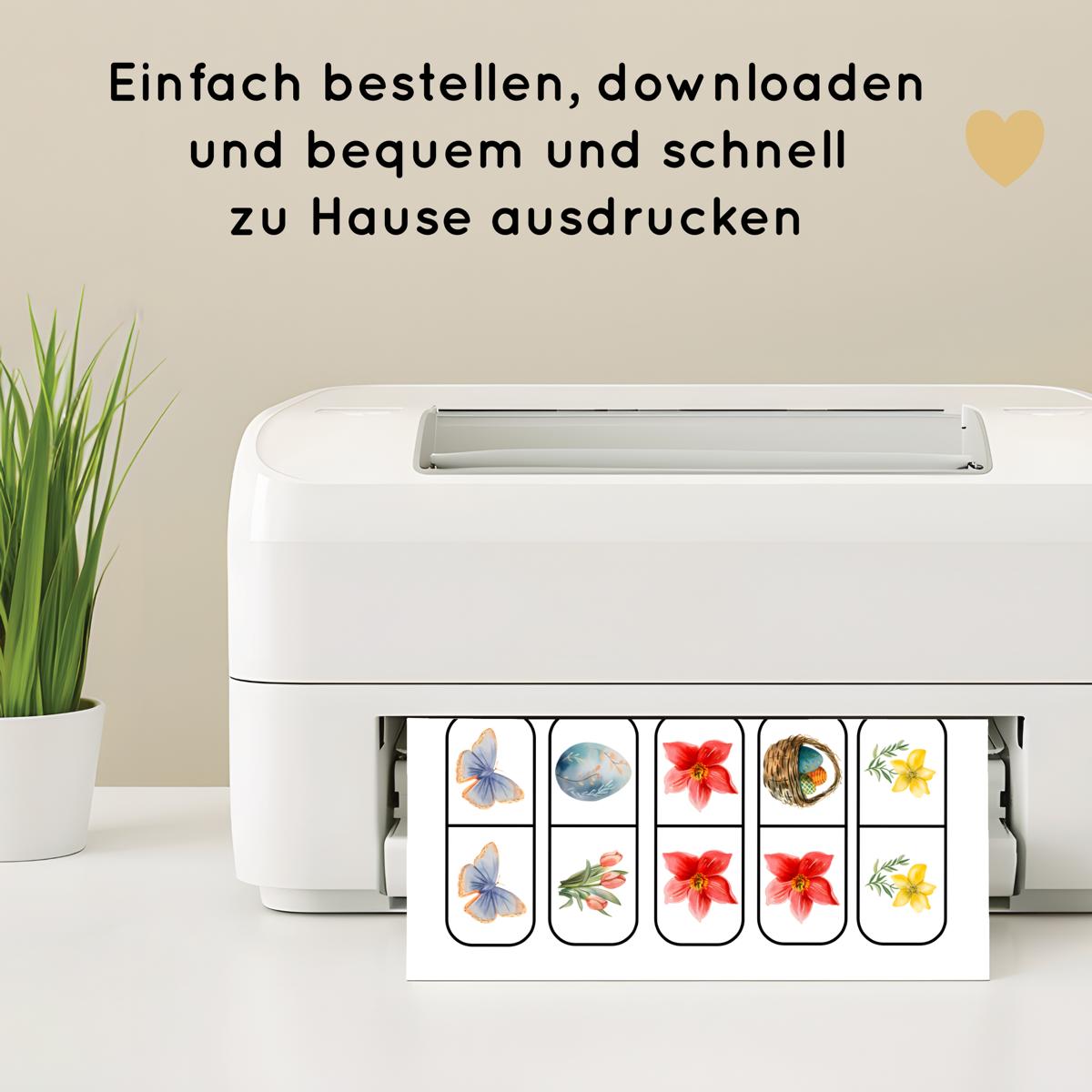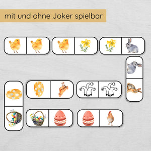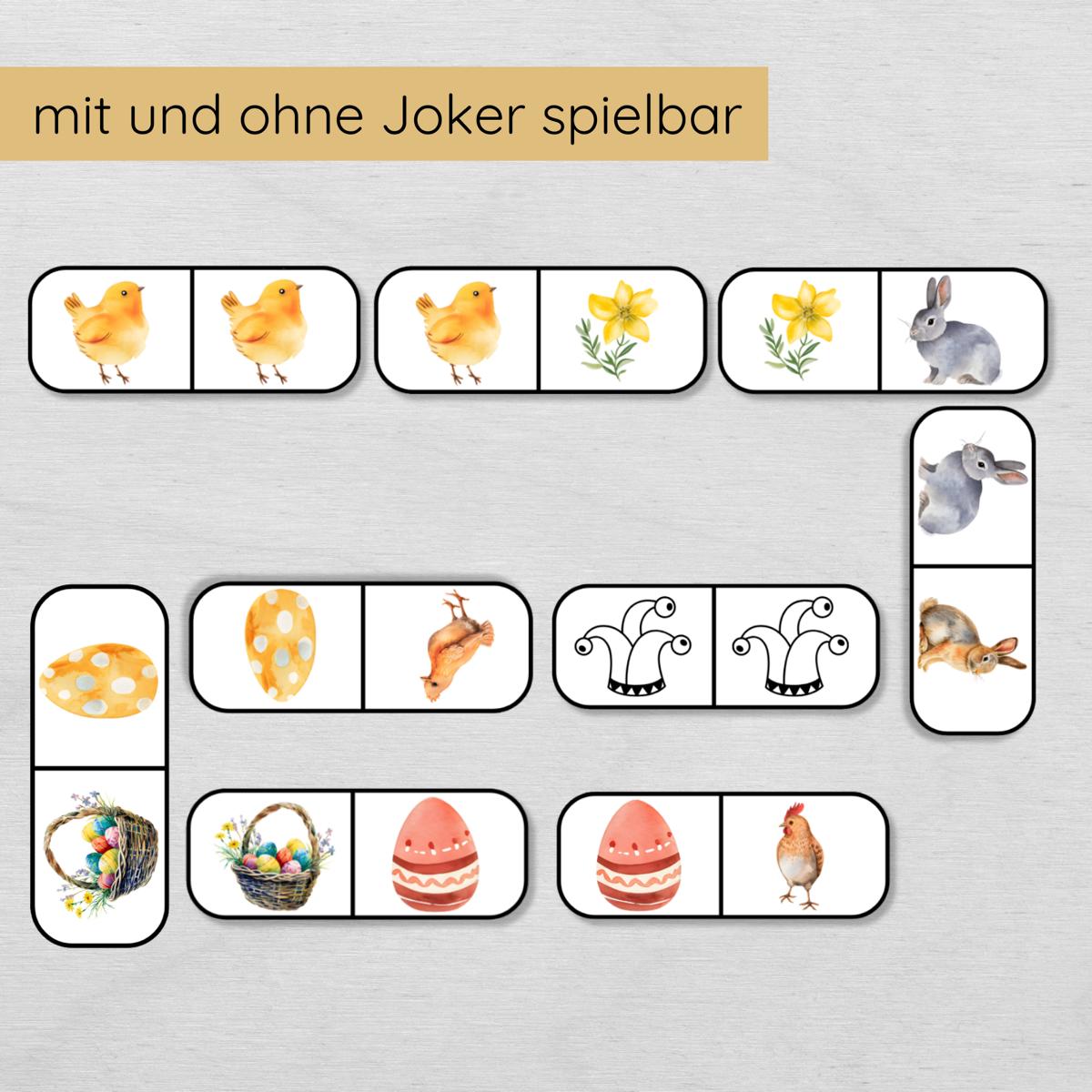 Bringe Abwechslung in die Osterzeit mit diesem farbenfrohen Domino-Spiel! 50 Karten mit Oster- und Frühlingsmotiven sowie 5 Joker sorgen für endlosen Spielspaß. Ob alleine, mit Geschwistern oder der ganzen Familie – das Oster-Domino bietet Unterhaltung und fördert dabei Konzentration und logisches Denken. Einfach ausdrucken und loslegen!
