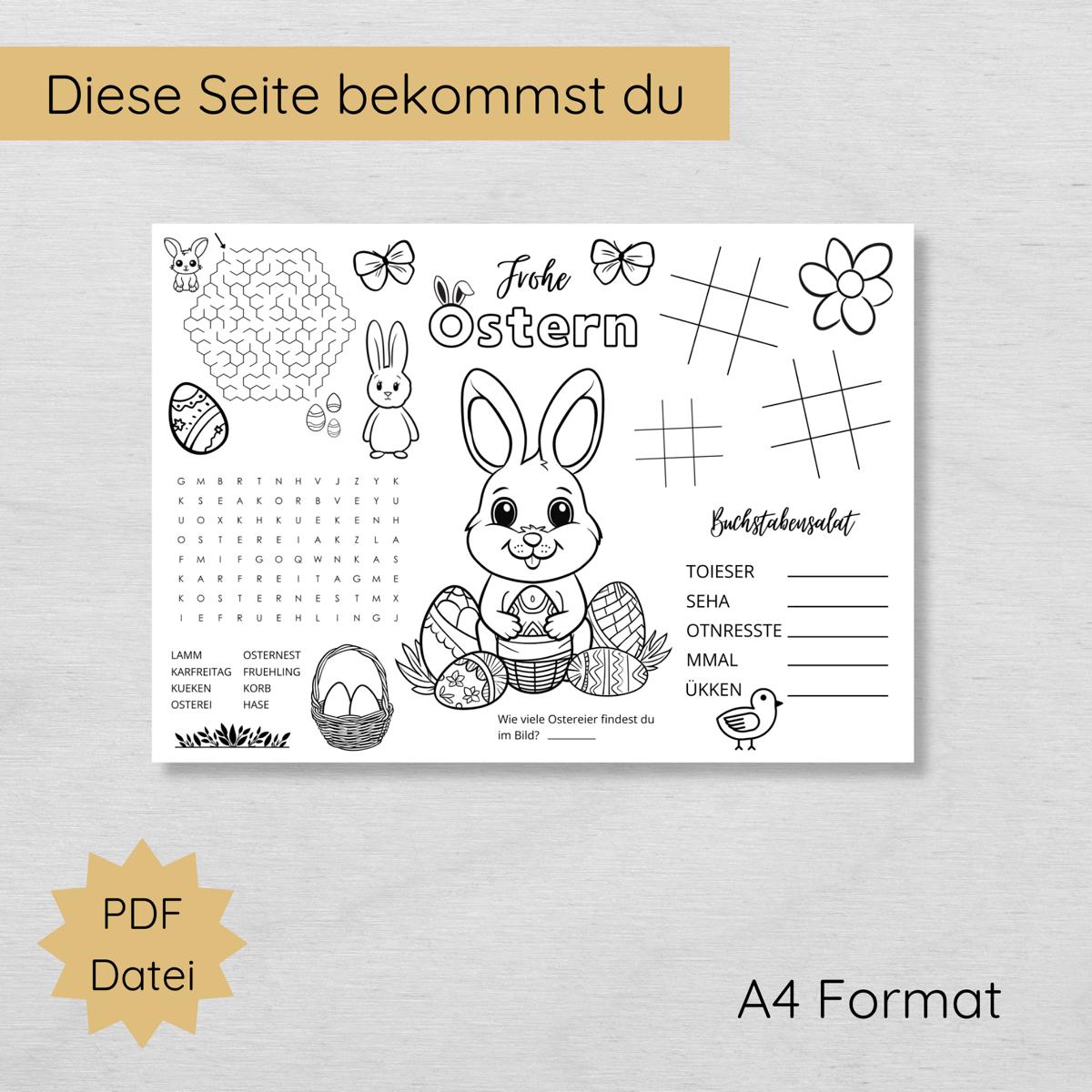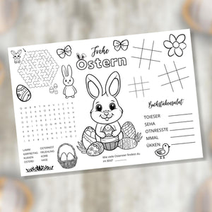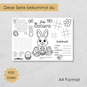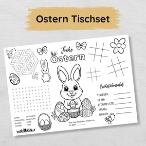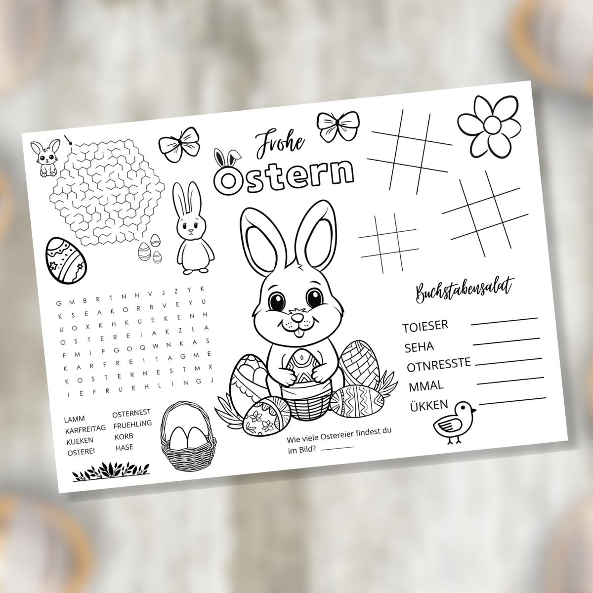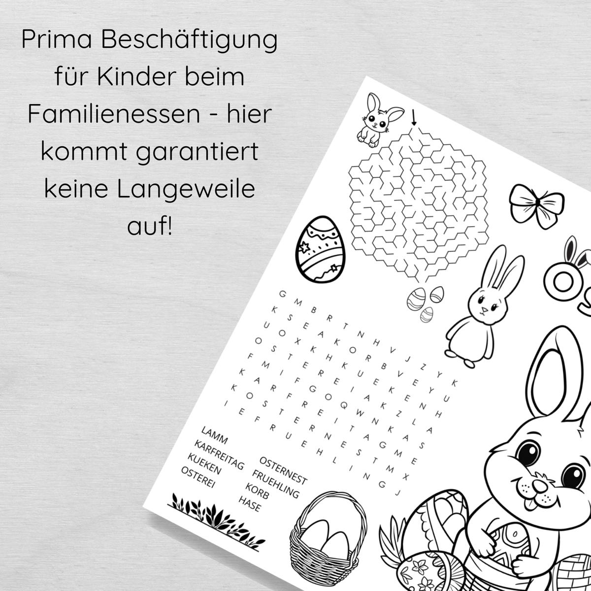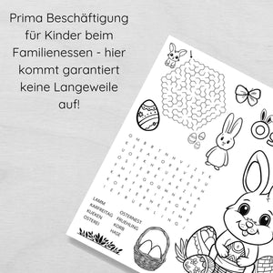 Ostern Tischset für Kinder mit Ausmalbildern & Rätseln