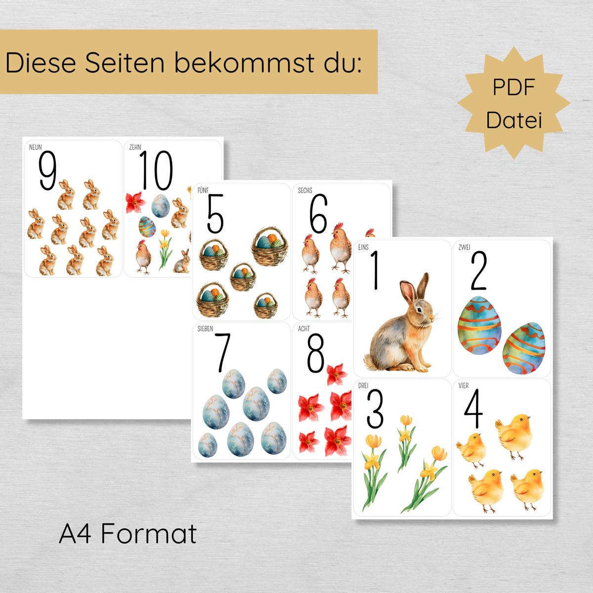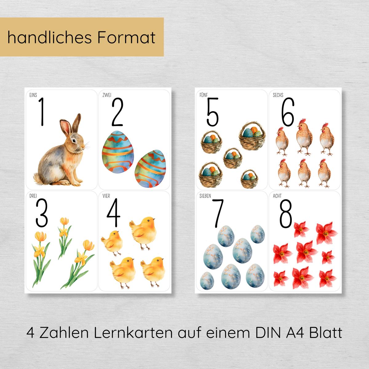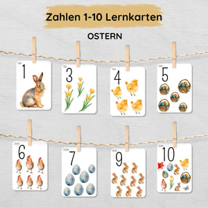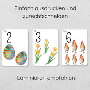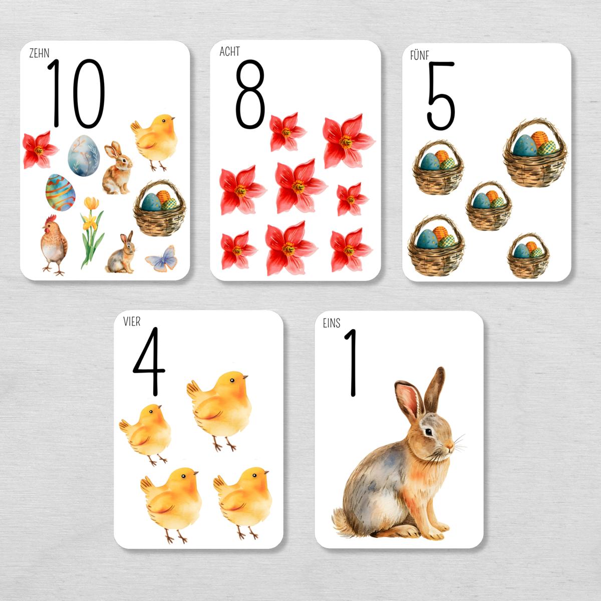 Ostern Zahlen 1 bis 10 Lernkarten für Kinder