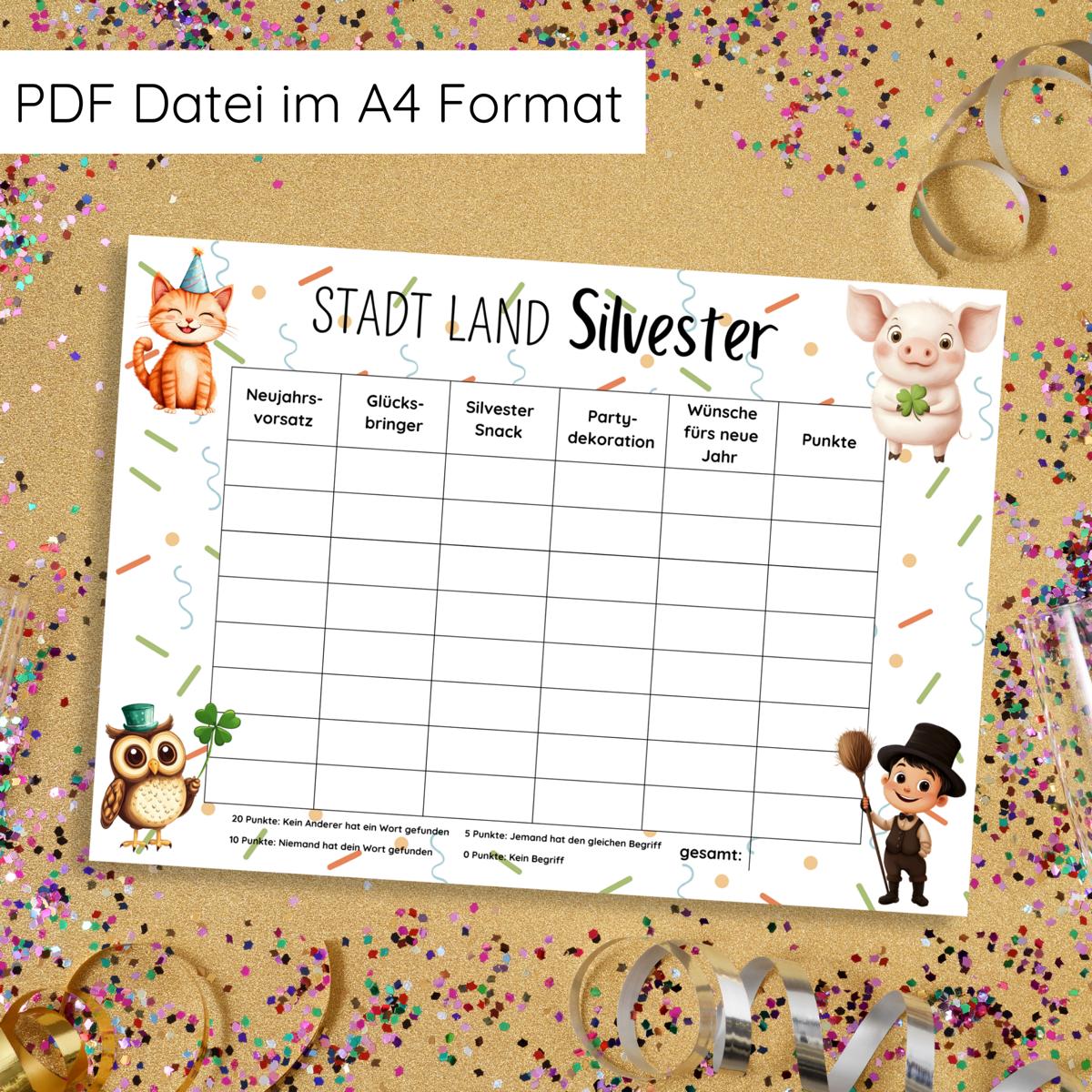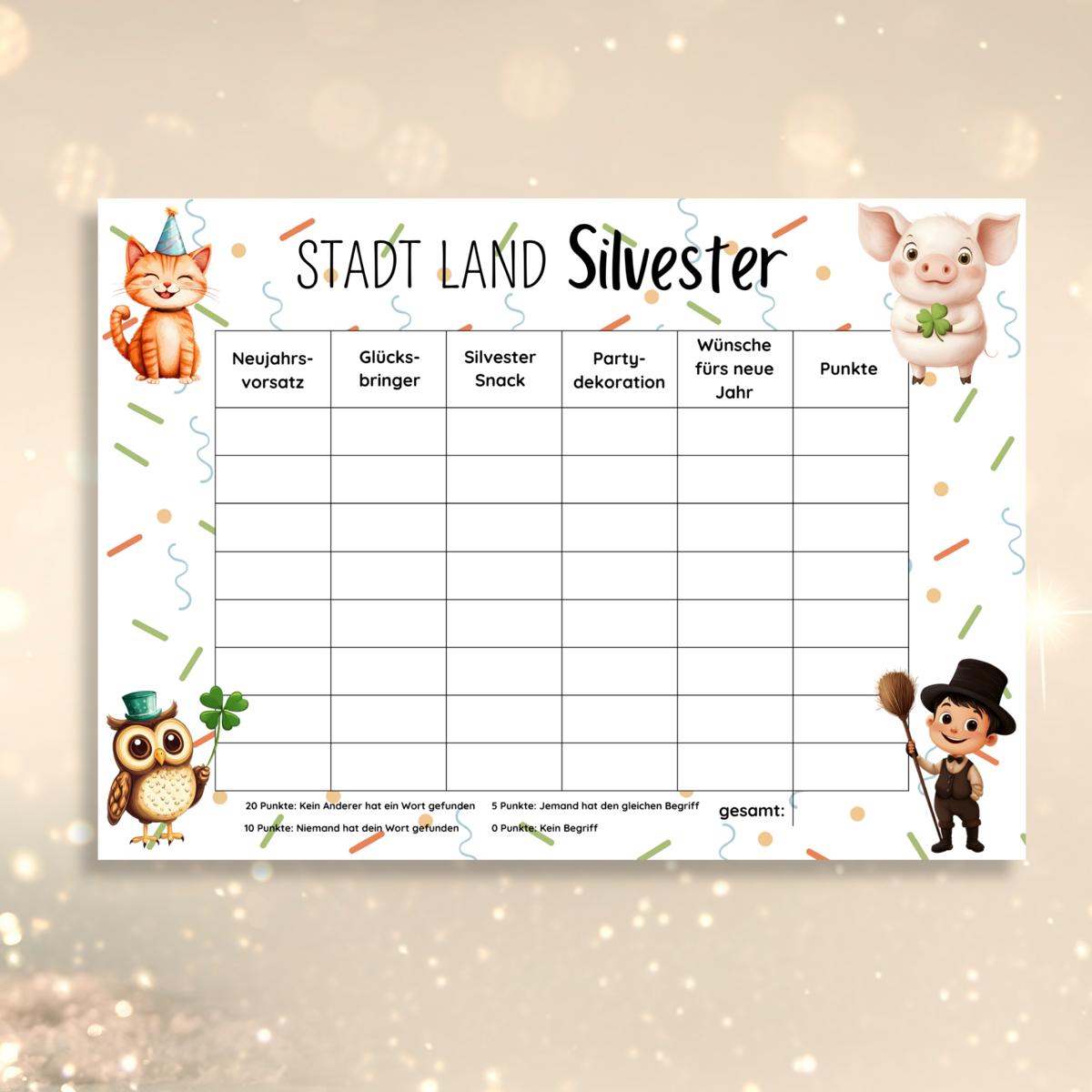 Stadt Land Silvester Spielvorlage