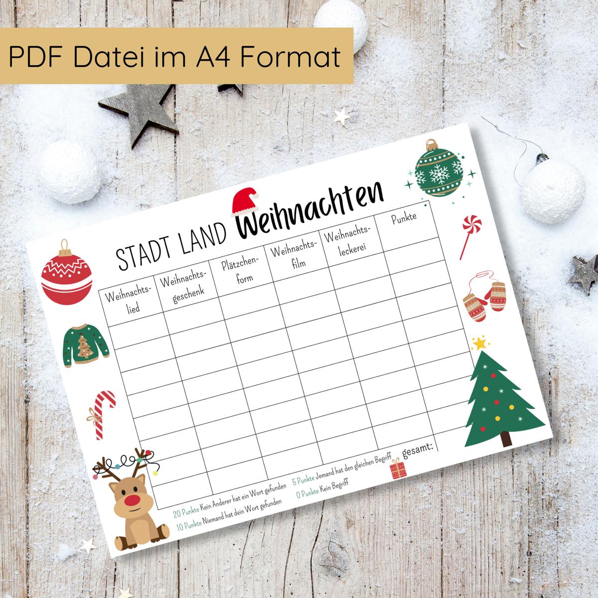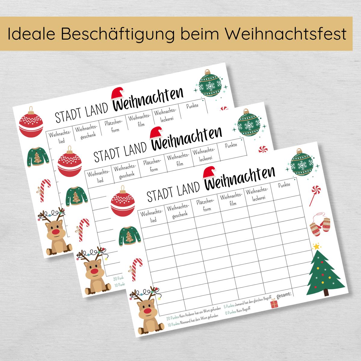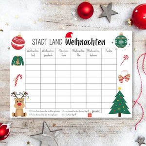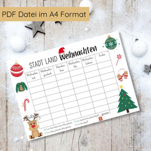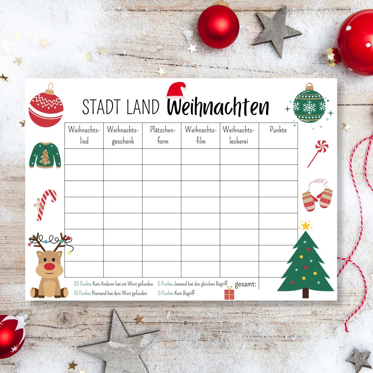 Stadt Land Weihnachten Familienspiel Druckvorlage