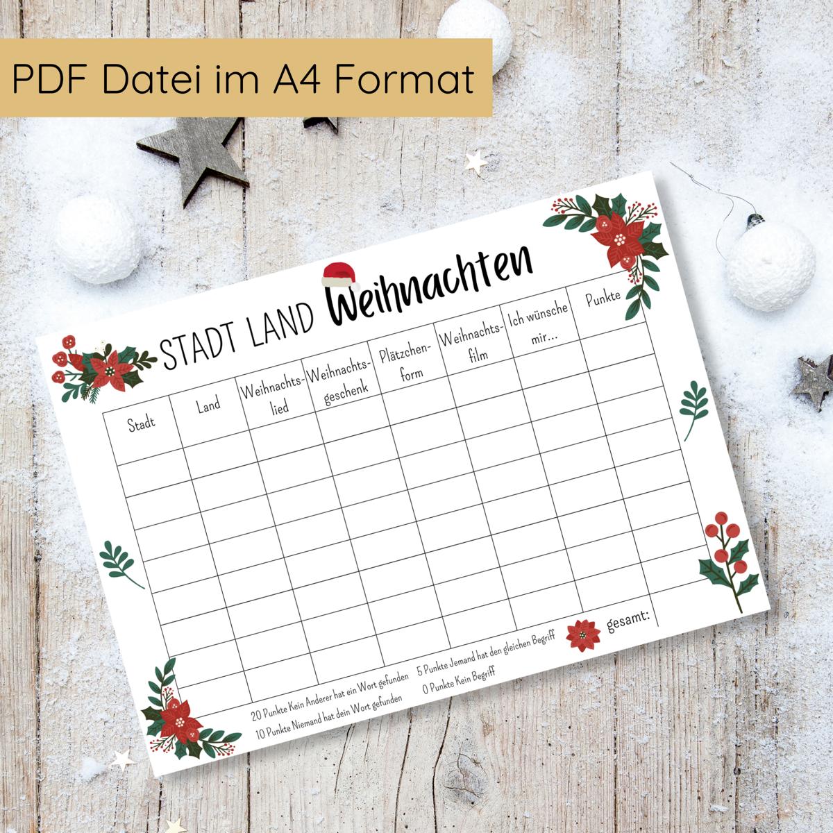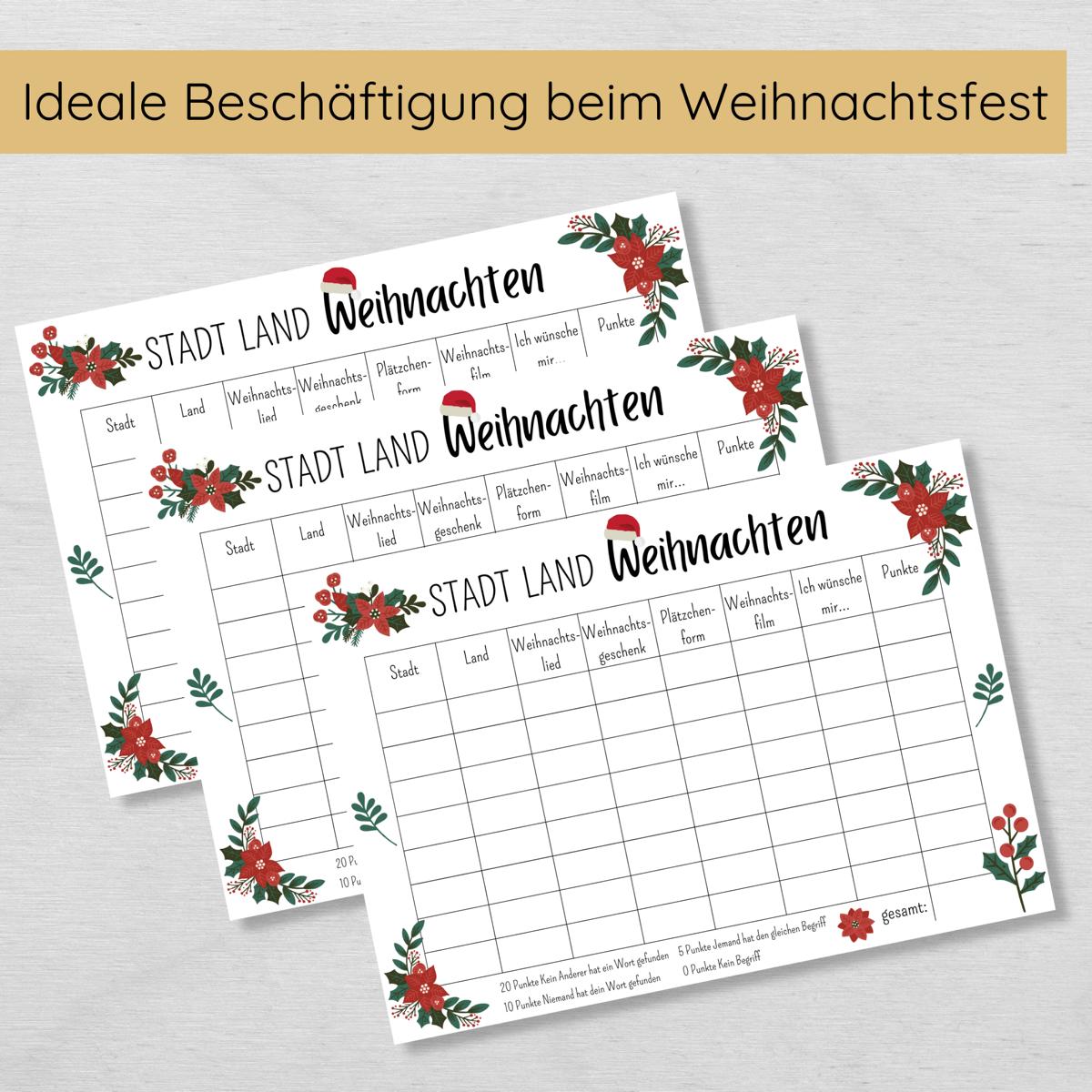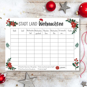 Stadt Land Weihnachten Spielvorlage zum Ausdrucken