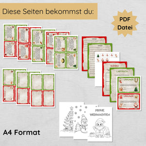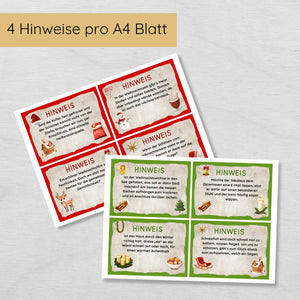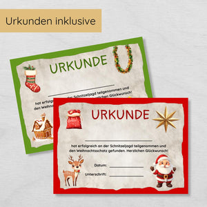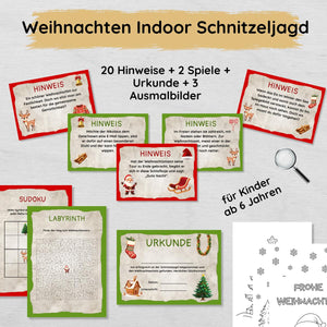 Weihnachten Indoor Schnitzeljagd mit 20 Hinweisen, Urkunde, 2 Spielen & 3 Ausmalbildern