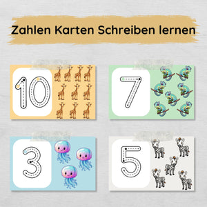 Zahlen 1-10 schreiben lernen, Übungskarten für Kinder