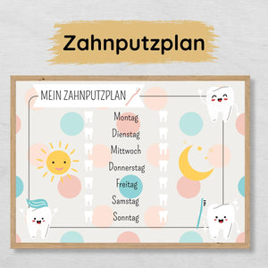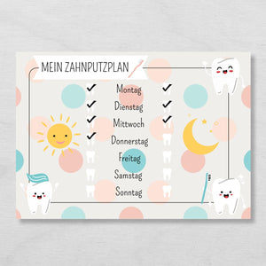 Zahnputzplan für Kinder, Zähne putzen Checkliste, gepunktet